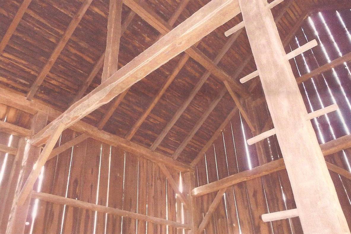 The oldest barns still found in the state are called the “English Barn,” “side-entry barn,” “eave entry,” or a 30 x 40. They are simple buildings with rectangular plan, pitched gable roof, and a door or doors located on one or both of the eave sides of the building based on the grain warehouses of the English colonists’ homeland. The name “30 by 40” originates from its size (in feet), which was large enough for 1 family and could service about 100 acres. The multi-purpose use of the English barn is reflected by the building’s construction in three distinct bays - one for each use. The middle bay was used for threshing, which is separating the seed from the stalk in wheat and oat by beating the stalks with a flail. The flanking bays would be for animals and hay storage.