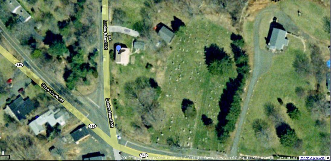 The barn is behind and to the east of the c. 1830 house with which it is associated. The ridge-line of the house is perpendicular to the ridge-line of the barn. The 1 acre site is a corner lot at the intersection of Leetes Island Road (which turns north at this intersection), Stony Creek Road to the west and Thimble Island Road to the south. To the south of the house is the yard. Between the house and the barn is a gable-roofed structure. To the north of the barn is open space. The Stony Creek Cemetery demarcates the east border. The area surrounding the site is residential, open space and woodland.