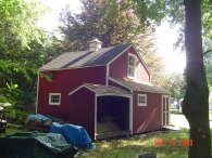 The village location and small size suggest that this may have been a carriage barn or work-shed. The form resembles a small English barn.