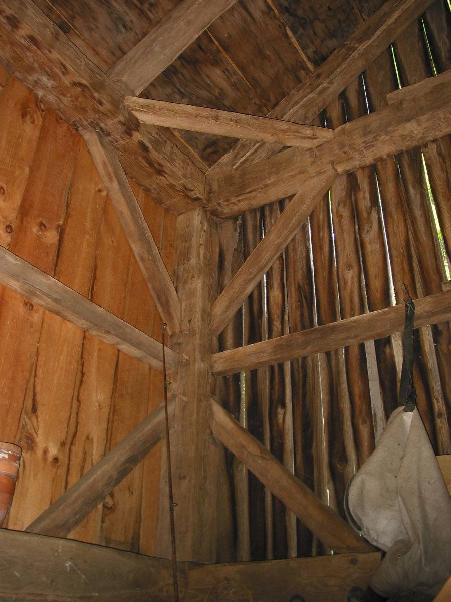 The oldest barns still found in the state are called the “English Barn,” “side-entry barn,” “eave entry,” or a 30 x 40. They are simple buildings with rectangular plan, pitched gable roof, and a door or doors located on one or both of the eave sides of the building based on the grain warehouses of the English colonists’ homeland. The name “30 by 40” originates from its size (in feet), which was large enough for 1 family and could service about 100 acres. The multi-purpose use of the English barn is reflected by the building’s construction in three distinct bays - one for each use. The middle bay was used for threshing, which is separating the seed from the stalk in wheat and oat by beating the stalks with a flail. The flanking bays would be for animals and hay storage.