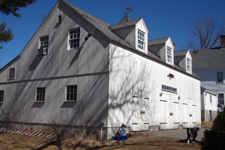 Carriage-type barn next to 1780-1810 historic federal house, but rebuilt in 2000 on site of much older barn. 1990 rebuilt barn is attached to the Jared Cone House in Bolton. The Cone House was built in 1755 and 1804 (the front). It is about 1,000 square feet and includes a 220 square foot horse shed.