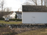 The barn fronts Hebron Road and is on the opposite side of the road from the house with which it is associated. Hebron Road runs generally north-south but curves toward the east at this point. The ridge-line of the barn is parallel to the road and at a diagonal to the ridge-line of the main portion of the house. The 2 ½-story center-chimney Colonial style house, built in c. 1740, has its main entry in the east eave-side of a gable-roofed block oriented with the ridge-line north-south. A 2 1/2-story wing projects west from the main block and a 1-story ell extends west from the southwest corner of the wing. There are extensive gardens and woodlands associated with the house, which occupies a 50-acre lot. The barn occupies its own lot of 5 acres. A short gravel driveway leads southwest from Hebron Road to the main entry of the barn. There is parking area adjacent to the northwest corner of the barn and a grassed open area beside the southwest gable-end. There appears to be a stream running alongside the southeast eave-side of the barn following the gentle slope of the land towards the east. A retaining wall extends from the east half of the southeast eave-side and curves away towards the west. There are woodlands on the northeast side of the barn. The area surrounding the site is open land, woodland and scattered housing. The property is at the southwest edge of the village of Andover, located where Jonathan Trumbull Highway (US Route 6 today) meets Hebron Road.