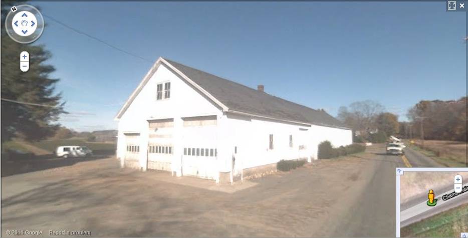 Barn-II: This is a 1 ½ - story barn with entries from both the eave-side and the gable-side and another 1 ½-story gable-entry barn attached to its east gable-side. The south eave-side of the barn faces Chamberlain Road with its ridge line running east-west parallel to the road. The main façade of the barn is the west gable-façade with two main entrances towards the south through two double-height over-head garage doors. The façade has a third entrance towards the north through another overhead garage door with a much lower lintel level. The façade has two pairs of two-over-two double-hung sash windows centered in the gable attic above. The south eave-side of the barn has an entrance towards the east through an overhead garage door and two pairs of two-over-two double-hung sash windows towards the west. The south eave-side of the gable-roof addition on the east gable-side of the main barn has an entrance towards the west through a pair of hinged wagon doors. Two pairs of two-over-two double-hung sash windows placed adjacent to each other can be seen above the wagon door entrance. The east gable-side of the gable-roof addition has an entrance at the center through a pair of hinged wagon doors with blacksmith hardware and a louvered vent centered in the gable attic. A hay track can be seen projecting out of the east gable-side just below the apex of the roof.