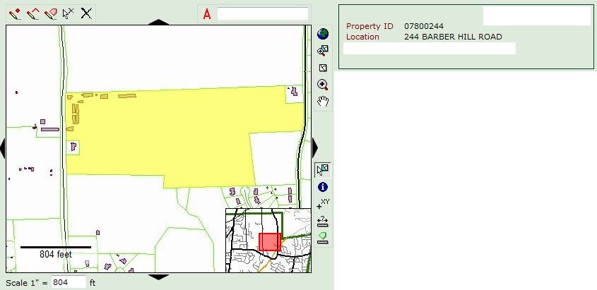 The 57.94 acres property, Account Number- 0002665 and Map Number- 127 1, is located towards the east of Barber Hill Road. The property is located in a residential area of rural character with individual plots separated by parcels of farm land. Farm land with farm houses and barns practicing active agriculture can be seen towards the north, east, south and the west across the road while the area towards the northeast is covered by dense woodland.