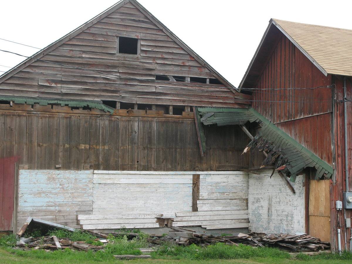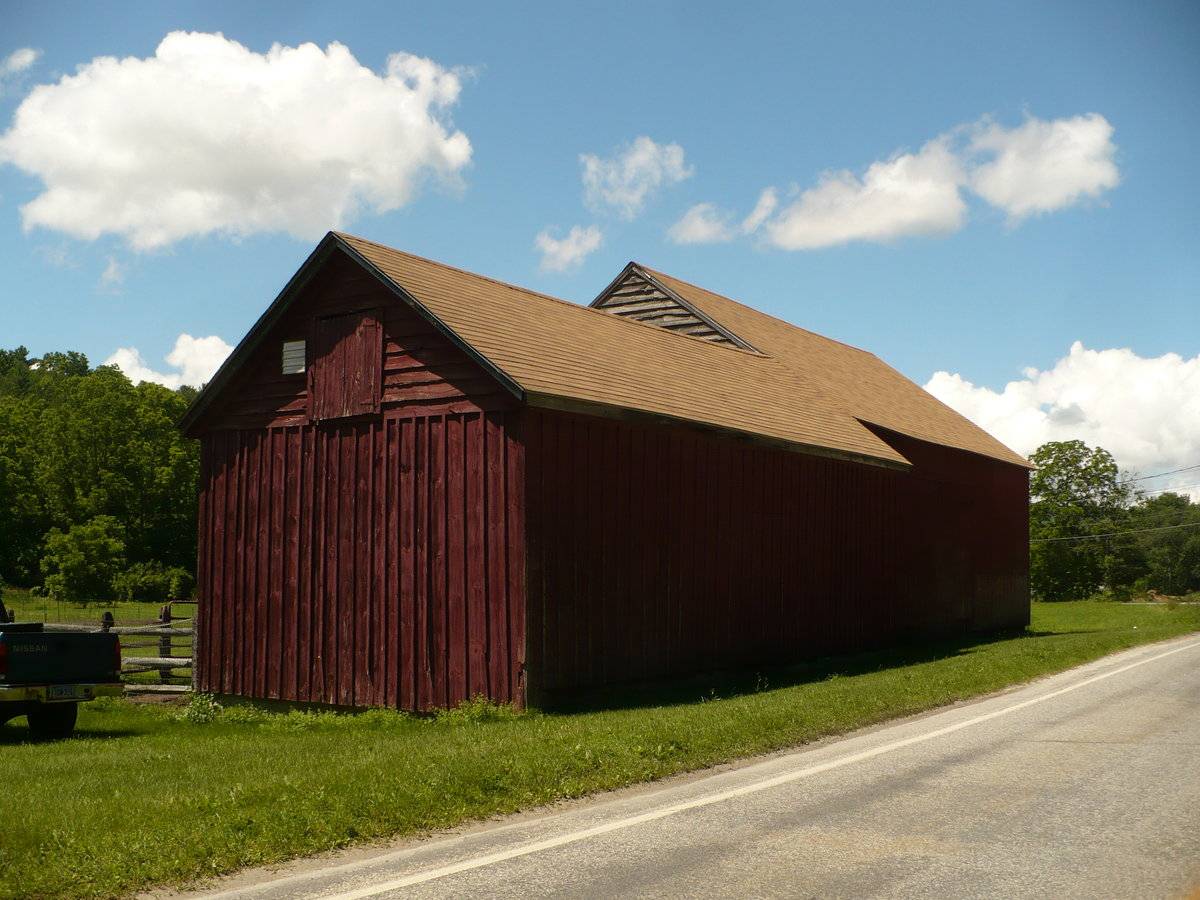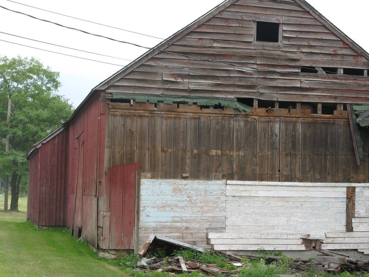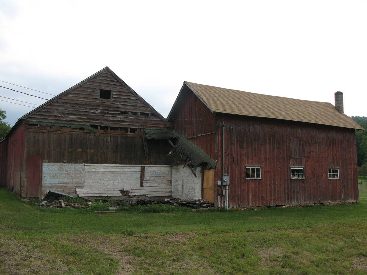 Visible from road - Yes Current use - Storage, and Equestrain Related Features - Barn Threats - Deterioration ( parts of building falling down on east side of barn near roadway). Matrials - Board, and Clapboard. Roof Materials - Asphalt Shingle. Structural System - Unknown