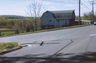 This is an inverted L-shaped bank barn towards the east of Long Hill Road with a cross-gambrel Dutch roof and a shed-roof addition at the inner junction of the barn. The main arm of the L-shaped barn complex is formed by Arm-I with the cross-gable intersection, Arm-II, on its west eave-side towards the north. The ridge line of Arm-I runs north-south parallel to this portion of Long Hill Road while that of Arm-II runs east-west. The west gable-end of Arm-II faces the road and appears to be the main façade of the barn with the main entrance at the center through a sunken wagon door entrance and the apex of the roof projecting out to form a hay hood. The grade level along the north eave-side of Arm-II gradually declines towards the east revealing the stone masonry wall of the bank level which is accessed by a sliding wagon door entrance towards the east. A nine-pane window can be seen at the first floor level centered above the wagon door entrance. The grade level continues to drop towards the east along the north gable-end of Arm-I which is flush with the north eave-side of Arm-II. The north gable-end of Arm-I has exposed masonry at the bank level and two nine-pane windows towards either side at the first floor level. A similar nine-pane window can be seen centered in the gable attic just below the apex of the roof. The low grade level along the north gable-end of Arm-I wraps the barn along its east eave-side and the south gable-end to form the bank level. The stone masonry of the bank level of the east eave-side of Arm-I is punctured by three equally spaced windows with three nine-pane windows above them at the first floor level. The bank level of the south gable-end of Arm-I appears to have two entrances through two over-head garage doors. The south gable-end of Arm-I has two nine-pane windows at the first floor level and a similar nine-pane window just below the apex of the roof.
