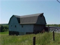 The gambrel roof enclosed a much greater volume than a gable roof did, and its shape could be formed with trusses that did not require cross beams, which would interfere with the movement and storage of hay. Also known as the curb roof, the double slopes of the gambrel offer more volume in the hayloft without increasing the height of the side walls.