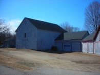 The cluster of agricultural buildings at this site include a central perpendicular barn with a side-wing on each eave-side, and a stand-alone wagon-shed building canted at an angle to both the main barn and the road. The main barn is a 2 ½-story structure with a gable-roof. A subservient parallel addition of 1 ½-stories projects off both the north and south eave sides, which are referred to as the North Addition and South Addition, respectively. The Wagon Shed is five and one half bays in width and also had a gable-roof, with a prominent gable-dormer, centered on the façade. These buildings are located to the immediate south of the main Wauregan Mill building, directly fronting South Walnut Street.