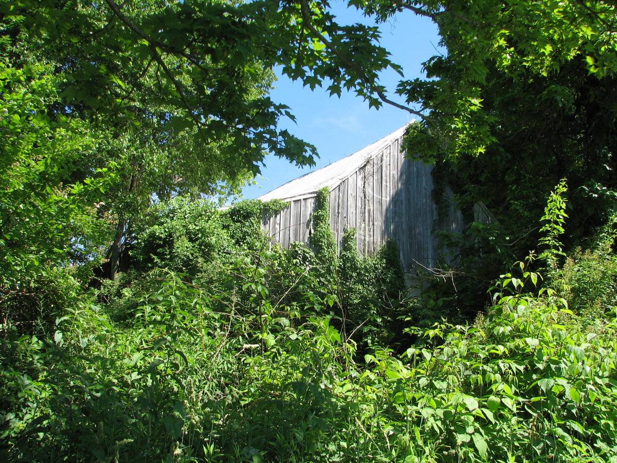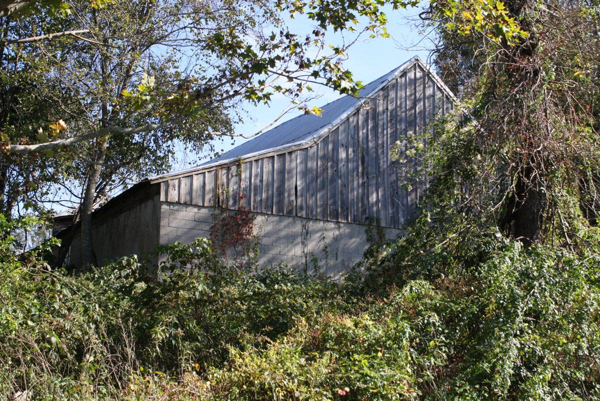 The western half of the west block of this L-shaped barn is almost certainly the oldest section and may have originated as a tobacco barn. It has a dirt floor, which suggests it was not used for cows, and is notable for a spacious interior with a high roof and single-span beam.