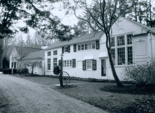 "Once part of a larger, single parcel, the former farm property contains two contributing resources: a c. 1778 Georgian farmhouse and an adjacent, c. 1800 carriage barn. The proposed district is named for inventor and entrepreneur Verneur E. Pratt, who lived in the farmhouse and converted the adjacent barn for use as a laboratory and machine shop. The house and carriage barn are located on nearly 3 acres in what is known as Silvermine, a suburban residential neighborhood that straddles the municipalities of Norwalk, New Canaan, and Wilton.""Constructed c. 1800, the adjacent carriage barn which is now 116 Perry Avenue was converted to a laboratory by Verneur Pratt in the late 1930s. A large studio window was added to the north elevation. The carriage house was originally purpose-built as a barn for the house in early nineteenth century barn or carriage house. It seems probably that the stucco exterior was added when the house was first converted to residential use in the early twentieth century. A photograph from c. 1945 reveals the exterior to be mostly unchanged from its current state (2010). The one-story central portion was integrated and enlarged along with a newly constructed eastern wing in 2000. Exposed framing is visible throughout and reveals the original use and function of the space. It appears that the westernmost section of the building is stick-framed opposed to the central post-and-beam framed section, suggesting that the original barn was the one-and-a-half story portion-this is the section that has remnant vertical plank siding extant." -Phillip S. Esser Verneur Pratt Historic District