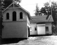 Five outbuildings are located to the southwest of the house. Most notable among these are a clapboard carriage house (Photograph #6) and laundry (Photograph #7) decorated in the Gothic Revival style. The gable ends feature crossbracing, finials, and brackets.