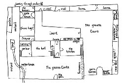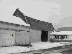 English Barns are the ur-barns in Connecticut. Are far as we can tell, these are the types of barns that the first settlers created. Based on the grain warehouses of the English colonists' homeland, the English barn is a simple building with a rectangular plan, pitched roof, and a door or doors located on one or both of the long sides of the building. In interpreting an early sketch plan for a complex that may have been constructed in Guilford by Bray Rossiter, historian Robert Blair St. George suggests that the barn shown in the drawing may have been a side entry barn. (See figures 1 and 2) Certainly the earliest barns that remain standing in the state (and, New England) follow this plan – for example, the Stiles Barn in Southbury (Figure 3), the barn at the heart of a large complex in Shelton (Figure 4), and an early barn in Norwalk (Figure 5) are all good examples of how early barns in the state looked.
