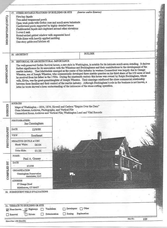Cunningham, Jan, State Historic Resource Inventory of Marbledale, Washington, CT, 1999.