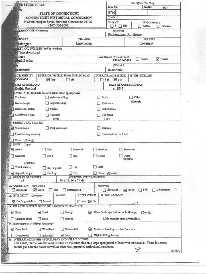 Listed on the State Register of Historic Places 8/07/2013. CT Trust Barns grant, followed by major restoration work 2012-13.