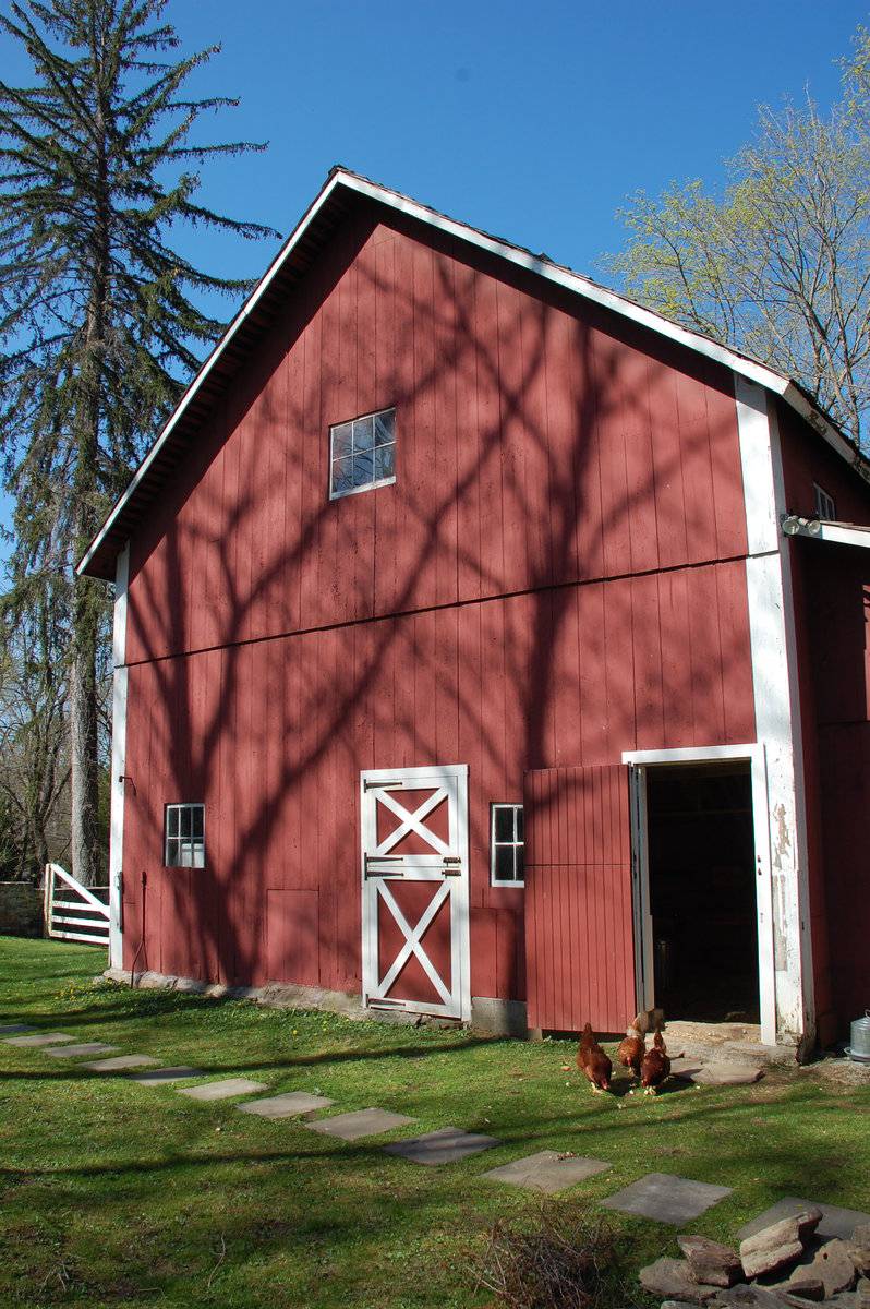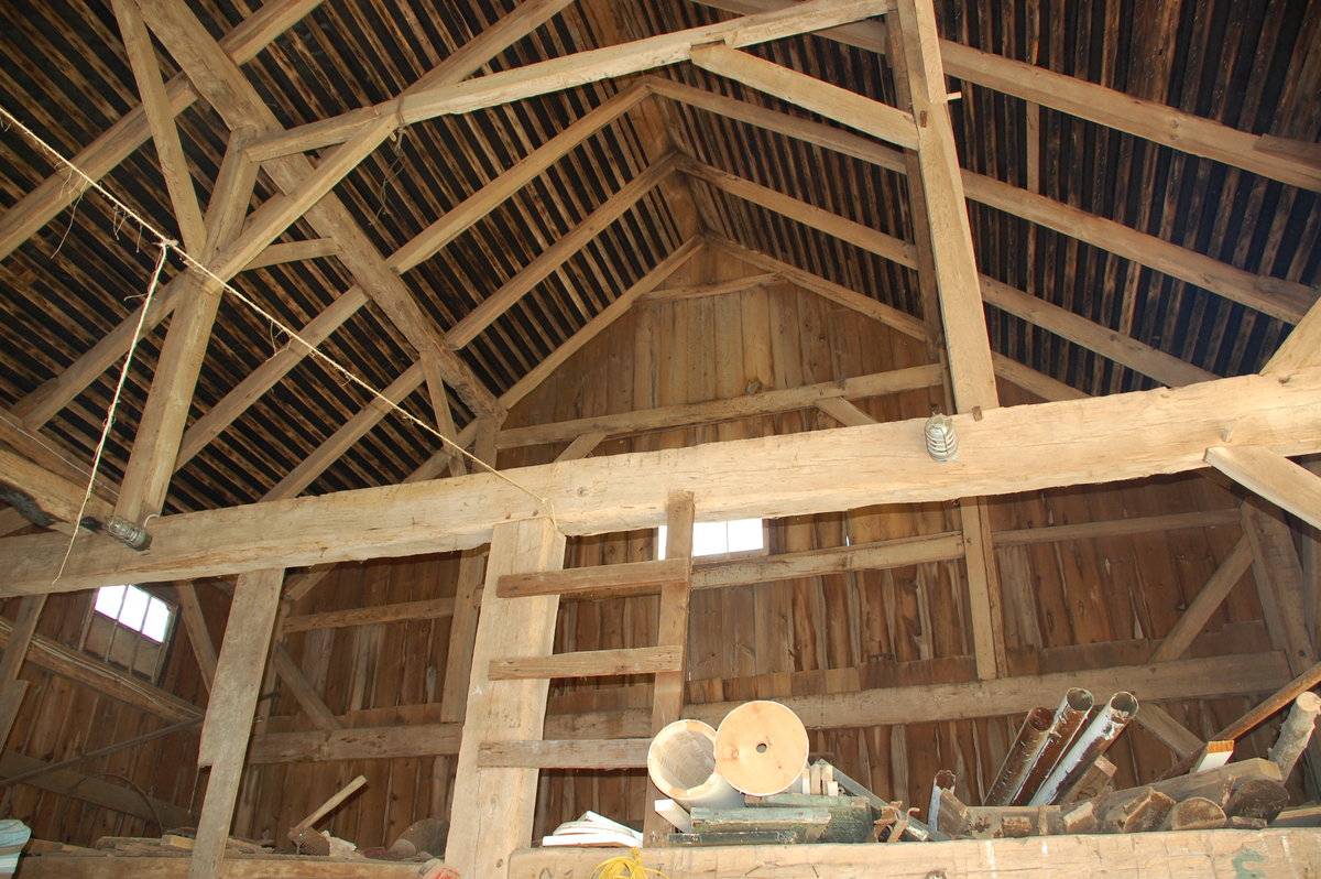 The oldest barns still found in the state are called the “English Barn,” “side-entry barn,” “eave entry,” or a 30 x 40. They are simple buildings with rectangular plan, pitched gable roof, and a door or doors located on one or both of the eave sides of the building based on the grain warehouses of the English colonists’ homeland. The name “30 by 40” originates from its size (in feet), which was large enough for 1 family and could service about 100 acres. The multi-purpose use of the English barn is reflected by the building’s construction in three distinct bays - one for each use. The middle bay was used for threshing, which is separating the seed from the stalk in wheat and oat by beating the stalks with a flail. The flanking bays would be for animals and hay storage.