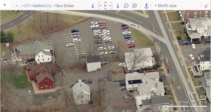 The 0.5 acres property, Account Number- 13900030 and Map number- D6D/ 15A/ / / /, is located towards the west of Cedar Street and the south of Lake Street. The property is located in a mixed land-use area surrounded by residential and institutional units. The property, now Art League of New Britain is flanked by parking space towards its east and the northeast while residential units can be seen towards is southeast. Medical institutions and clinics can be seen towards further west of the property along Lenox Place.