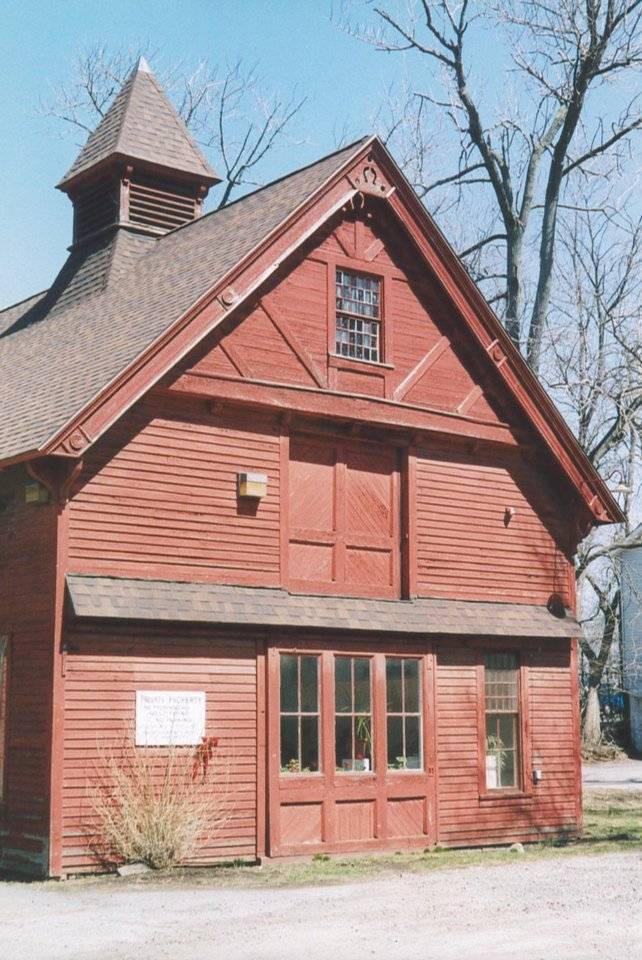 Contributing resource in the Walnut Hill Historic District No. 75001936. The barn has been the home of the Art League of New Britain since its inception in 1928. It was built by Mr. Post around 1870. Post called it a carriage house, constructed for his horses, wagons, buggies and feed. “A humble old red barn will soon become the home of New Britain 's first art school. Gone is the quiet that for years has haunted the old building as it stood, silent and ignored, at 30 Cedar Street . Today it echoes the sounds of busy workmen who are reconditioning it for the new and important role it is to play in the city's life. Within it's walls strange changes are taking place. Familiar stalls and stables are being torn away. Partitions are being removed. Rats and mice and cats, tenants of yesterday, have fled in terror before all this confusion. A big studio is being fashioned – a studio in which many future artists of New Britain will receive their first training.” This new institution was known as The Art League of New Britain or, more simply, The Studio. [Source: http://www.alnb.org/] HISTORY The Art League of New Britain, a non-profit organization, is the second oldest art league in the United States. Founded in 1928 and its original mission was as an art school holding both day and evening sessions. in 1934 it transitioned into an art club where artists could work together and gather for social affairs. The ALNB’s first president, Artist and former Director of the New Britain Museum of American Art; Sanford B.D. Low was the driving force behind the original success of the League. He gave considerable time, talent and enthusiasm to keep the arts alive during the depression. We honor him with our Sanford B. D. Low gallery. The Art League's home first served as local industrialist George Post stable and carriage house. In fact the names of the horses are still above each stall door and the horse shoe cut out is still remains at the peak of the main gable. Post's daughter sold the barn to A.J. Sloper who in turn sold it to William C. Hungerford. The late judge Hungerford had granted the use of his stable to the League for some time before passing, and after his widow deeded the property to the league along with the surrounding land. Along the way the Art League has the responsibility for caring and preserving our precious landmark and has been careful stewards. In the words of Meta Lacy "Let no man presume to modernize our old barn by stripping it of its architectural personality, which properly dates it as a fine example of its period." [Source: http://www.alnb.org/]