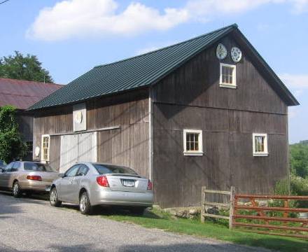 Other materials: Vertical board (tongue and groove). Other roof materials: Raised seam. Style: Vernacular bank barn.
