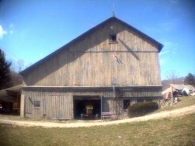 The New England barn or gable front barn was the successor to the English barn and relies on a gable entry rather than an entry under the eaves. The gable front offers many practical advantages. Roofs drain off the side, rather than flooding the dooryard. With the main drive floor running parallel to the ridge, the size of the barn could be increased to accommodate larger herds by adding additional bays to the rear gable end. Although it was seen by many as an improvement over the earlier side-entry English Barn, the New England barn did not replace its predecessor but rather coexisted with it. The 19th century also saw the introduction of a basement under the barn to allow for the easy collection and storage of a winter’s worth of manure from the animals sheltered within the building. The bank barn is characterized by the location of its main floor above grade, either through building on a hillside or by raising the building on a foundation. This innovation, aided by the introduction of windows for light and ventilation, would eventually be joined by the introduction of space to shelter more animals under the main floor of the barn.