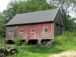 The New England barn or gable front barn was the successor to the English barn and relies on a gable entry rather than an entry under the eaves. The gable front offers many practical advantages. Roofs drain off the side, rather than flooding the dooryard. With the main drive floor running parallel to the ridge, the size of the barn could be increased to accommodate larger herds by adding additional bays to the rear gable end. Although it was seen by many as an improvement over the earlier side-entry English Barn, the New England barn did not replace its predecessor but rather coexisted with it.