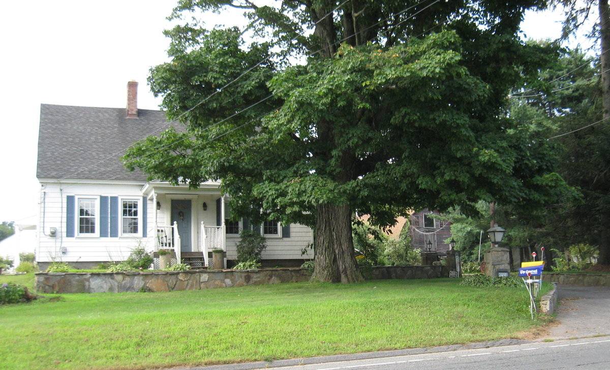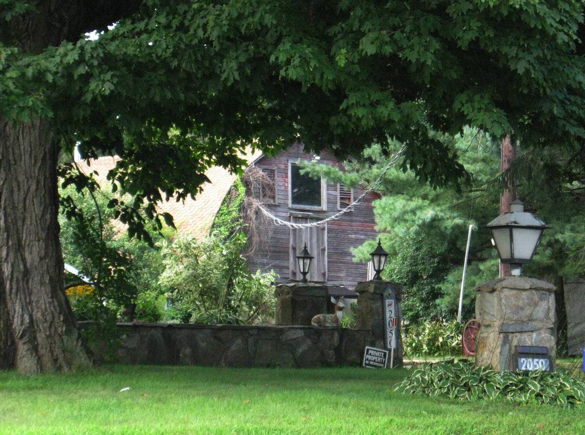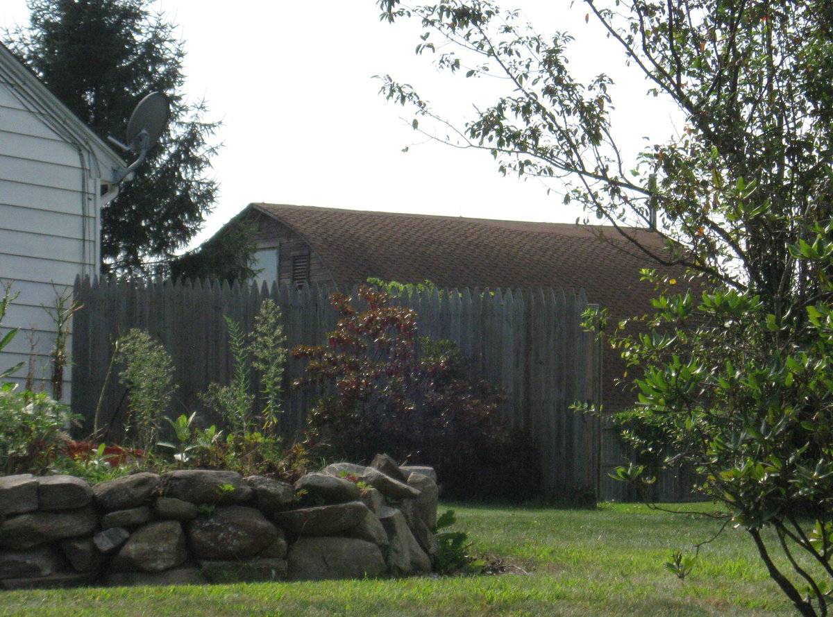 Arch-roof barn behind and to north of house. Not fully visible from the street.