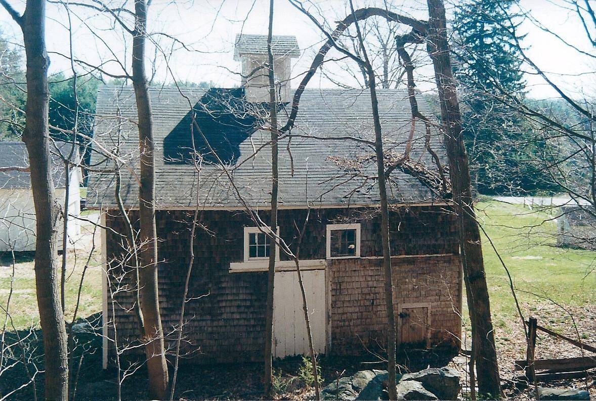 Three of the four outbuildings on the farm contribute to the historic architectural character of the complex. They include the c. 1870 barn which abuts the base of the hill, and a garage and playhouse, erected between 1920 and 1930.