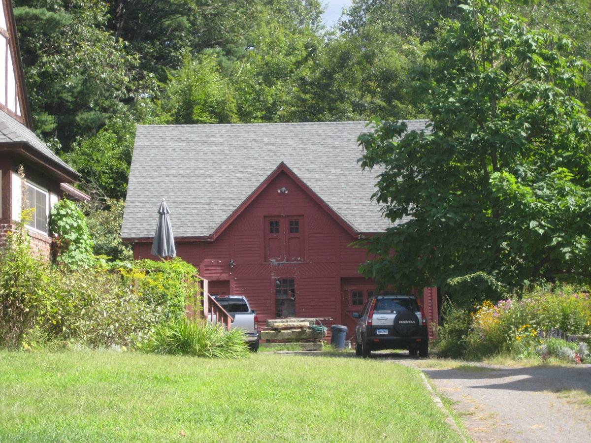 Listed on the State Register of Historic Places 2/06/2013 Historic Resource Inventory by T.Levine & C.Hitchcock 08/25/2011 Architectural description: This is a 1 1/2-story three-bay gable-roofed carriage house with a wall dormer centered in the front eave-side. The main eave-facade faces Highland Terrace, which runs roughly north-south. The west eave-side has a six-over-six double hung window in the center of three bays. Each of the flanking bays has an interior sliding barn door with four four-pane windows in the upper part above two large panels with x-braces. Beneath the apex of the wall dormer is a pair of hay doors each with a four-pane window above a panel with diagonal tongue-and-groove infill. The west facade has wood siding bands outlined by wider trim courses. The peak of the dormer has shingle siding, and there are panels of pointed shingle siding and of diagonal clapboard alternating with areas of horizontal clapboard. The structure is set into a rising slope, with the rear foundation wall rising to approximately three feet above the floor elevation. The north side has a six-over-six double hung window near the right (west) corner and a pass-through door, with a six-over-six double hung window at the upper loft level. The south side has three six-over-six double hung windows at grade and one above. The rear (east) wall has a six-over-six double hung window off-center toward the left (south). The roof has asphalt shingles and the structure is painted cream with brown trim. A concrete foundation is 8 inches high at the front and approximately 36 inches high at the rear (east) and portions of the north and south sides. Historical significance: Until the 1830’s, the horses used for riding and driving carriages were often kept in the main barn along with the other farm animals. By the 1850’s, some New England farmers built separate horse stables and carriage houses. Early carriage houses were built just to shelter a carriage and perhaps a sleigh, but no horses. The pre-cursor to the twentieth-century garage, these outbuildings are distinguished by their large hinged doors, few windows, and proximity to the dooryard. The combined horse stable and carriage house continued to be a common farm building through the second half of the nineteenth century and the first decade of the twentieth century, until automobiles became common.