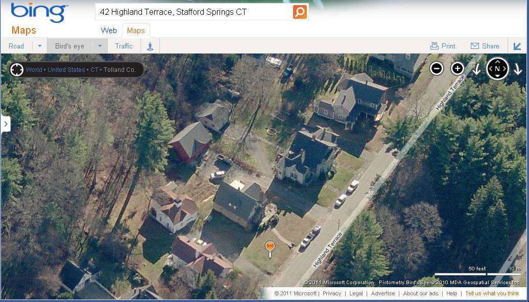 Map of Stafford, CT, retrieved on July 12, 2011 from website www.bing.com/maps.