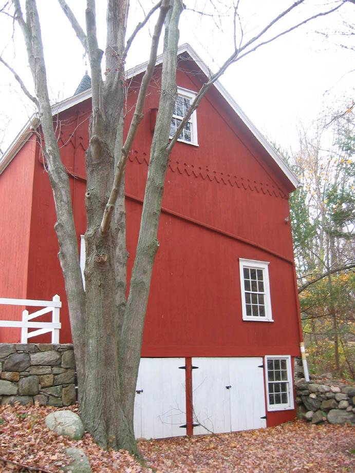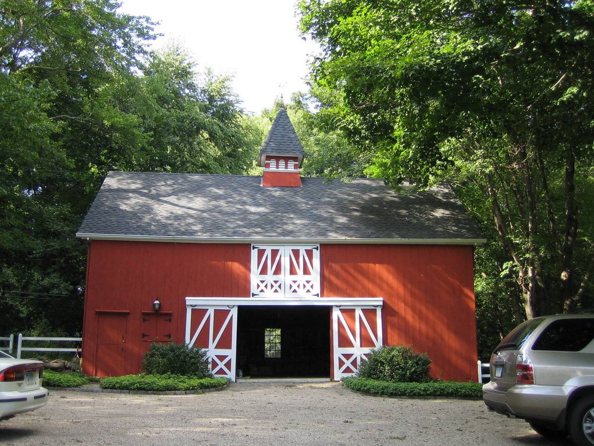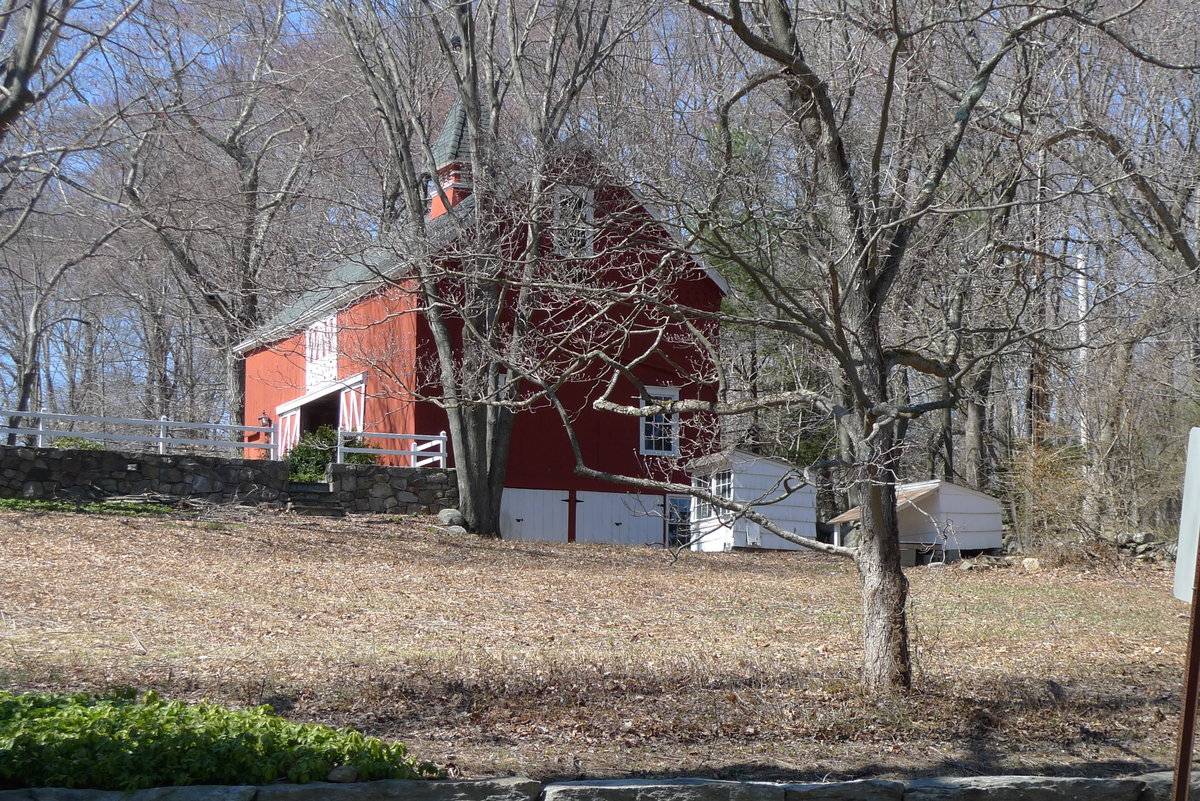 This building illustrates how barns were replaced over time. Although associated with the Weed House, constructed c. 1766, this barn was built in 1891 to replace an earlier barn on the property that was probably constructed around the time the house was built. The barn sits on a slope close to Woodridge Drive, a fair distance from the main house. The New Canaan Historical Society has placed a plaque on the house authenticating its construction c. 1766. The barn was constructed in 1891, a fact that was reported in the "New Canaan Nomarch," a local newspaper of that era. A dormer was removed from above the hay-loft doors at some point, and rotten sills were replaced in 1991 (update per Lindstrom 6/27/2014).