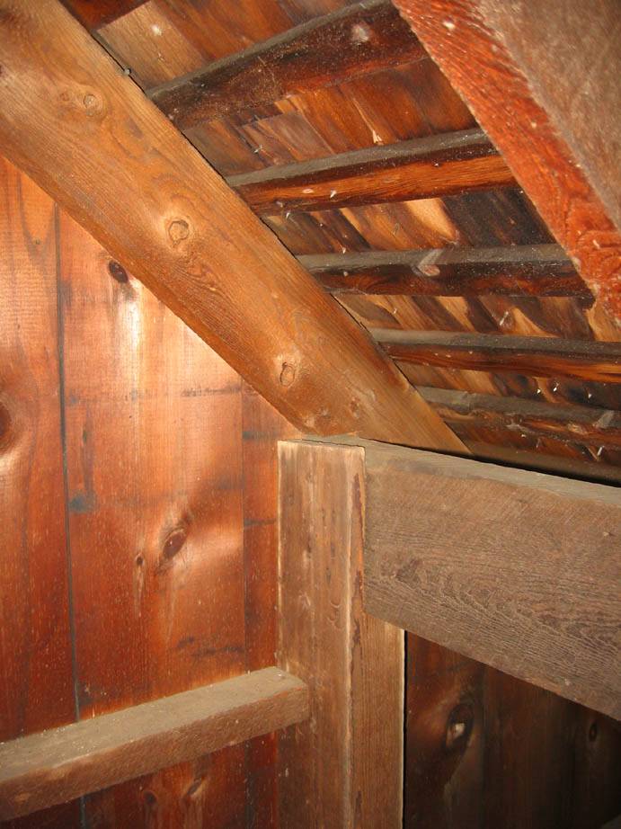 The oldest barns still found in the state are called the “English Barn,” “side-entry barn,” “eave entry,” or a 30 x 40. They are simple buildings with rectangular plan, pitched gable roof, and a door or doors located on one or both of the eave sides of the building based on the grain warehouses of the English colonists’ homeland. The name “30 by 40” originates from its size (in feet), which was large enough for 1 family and could service about 100 acres. The multi-purpose use of the English barn is reflected by the building’s construction in three distinct bays - one for each use. The middle bay was used for threshing, which is separating the seed from the stalk in wheat and oat by beating the stalks with a flail. The flanking bays would be for animals and hay storage.