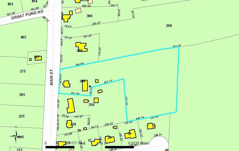 The 4.37 acres property, property number - 41400268 and property ID - 2442, is located towards the east of Main Street in a predominantly residential area. The property has a relatively narrow frontage to the road, spreading towards the east and south-east. Residential plots, separated by woodland can be seen towards the north, south and west of the property, across Main Street. The area towards the east of the plot is covered by dense woodland.