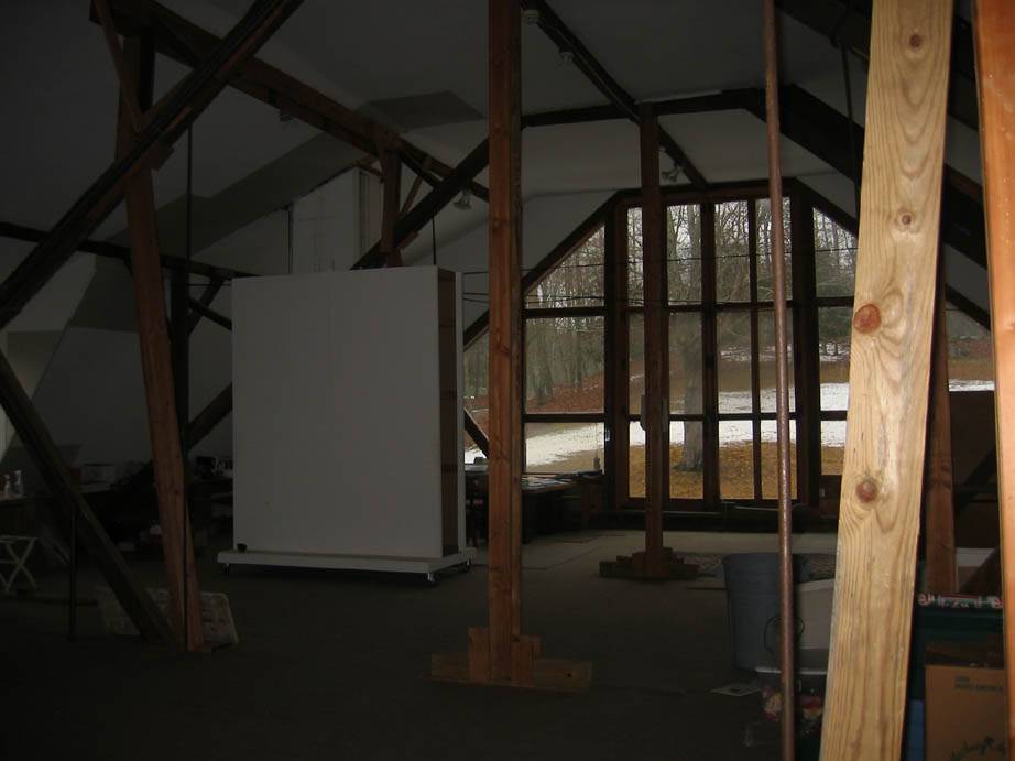 Note: photos are labeled as 412 Joshuatown Rd. This is a prime example of a gentleman farmer's barn from the beginning of the 20th century. The building skillful execution in the shingle style has prompted speculation that it may have been designed by McKim, Mead & White. Research into Leland Roth's _The architecture of McKim, Mead & White, 1870-1920 : a building list_ and the Avery Index to Architectural Periodicals has yet to turn up an architect for the building. It is known that it was constructed for Dr. John Morgan as part of a much larger complex. A carriage house from the original estate (and with matching doors) can be seen further down Joshuatown Road at "Grey Rocks." Note added 1/19/2014 by CH: The barn was purchased in 1962 by artist and teacher Harry Holtzman (1912-1987) and his wife Betsy McManus, and became their home and studio. Holtzman was an abstract painter, friend and executor of Piet Mondrian, involved in artistic and theoretical movements in New York City from the 1930s on, and taught at Brooklyn College for 25 years from the 1950s to the mid-1970s. http://flogris.org/archives/exhibition-note-hadlymes-grand-barn/ - excerpted from web site: Dr. John Morgan (1845-1920), a house builder’s son who grew up in Hadlyme, was 62 when he added the elegant barn to his country estate. By then he had been raising trotting horses for thirty years. His interest in “runner-horses” developed in Middletown, a small industrializing city on the Connecticut River about midway between Hadlyme and Hartford, where he settled after completing a medical degree at Yale in 1869. It was the size and scale of the deteriorating barn on Joshuatown Road that attracted Holtzman on a visit to Lyme in 1962. Even with brambles blocking the doorways, he decided within days to purchase the massive shingle and stone structure on a 3.4-acre plot for ten dollars from then-Connecticut State Police Commissioner Leo J. Mulcahy. Four hired high school students helped him clear away the brush. Transforming the 100 x 50 x 64-foot barn into a combined living and studio space took Holtzman more than a year. After creating a central flue from the hay chute, he constructed huge stone fireplaces in each of three outsized living areas. Gradually the calving pen on the first floor became a kitchen, the horse stalls on the second floor became a living room and studio, while the upper hayloft provided storage space. Holtzman called his reclaimed Hadlyme home “Bull Run Hill.”
