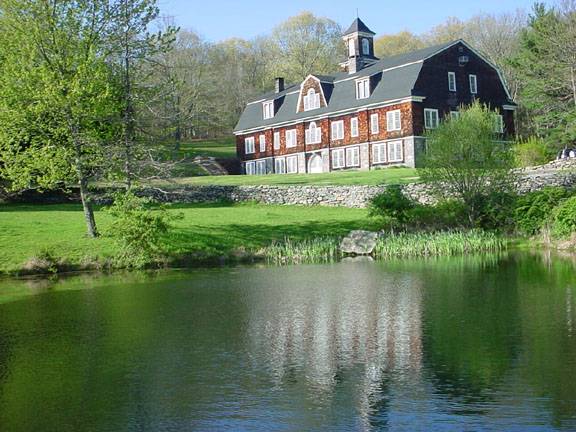 The barn holds a commanding place on a rise overlooking a small pond and the road. The barn is on the north side of the road and to the west is the Morgan estate “Grey Rocks” with which it was originally associated.