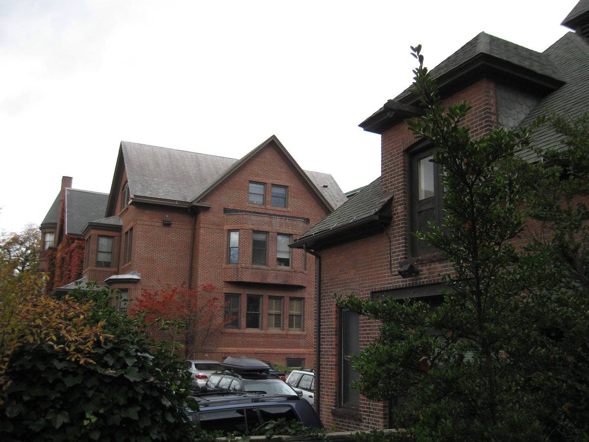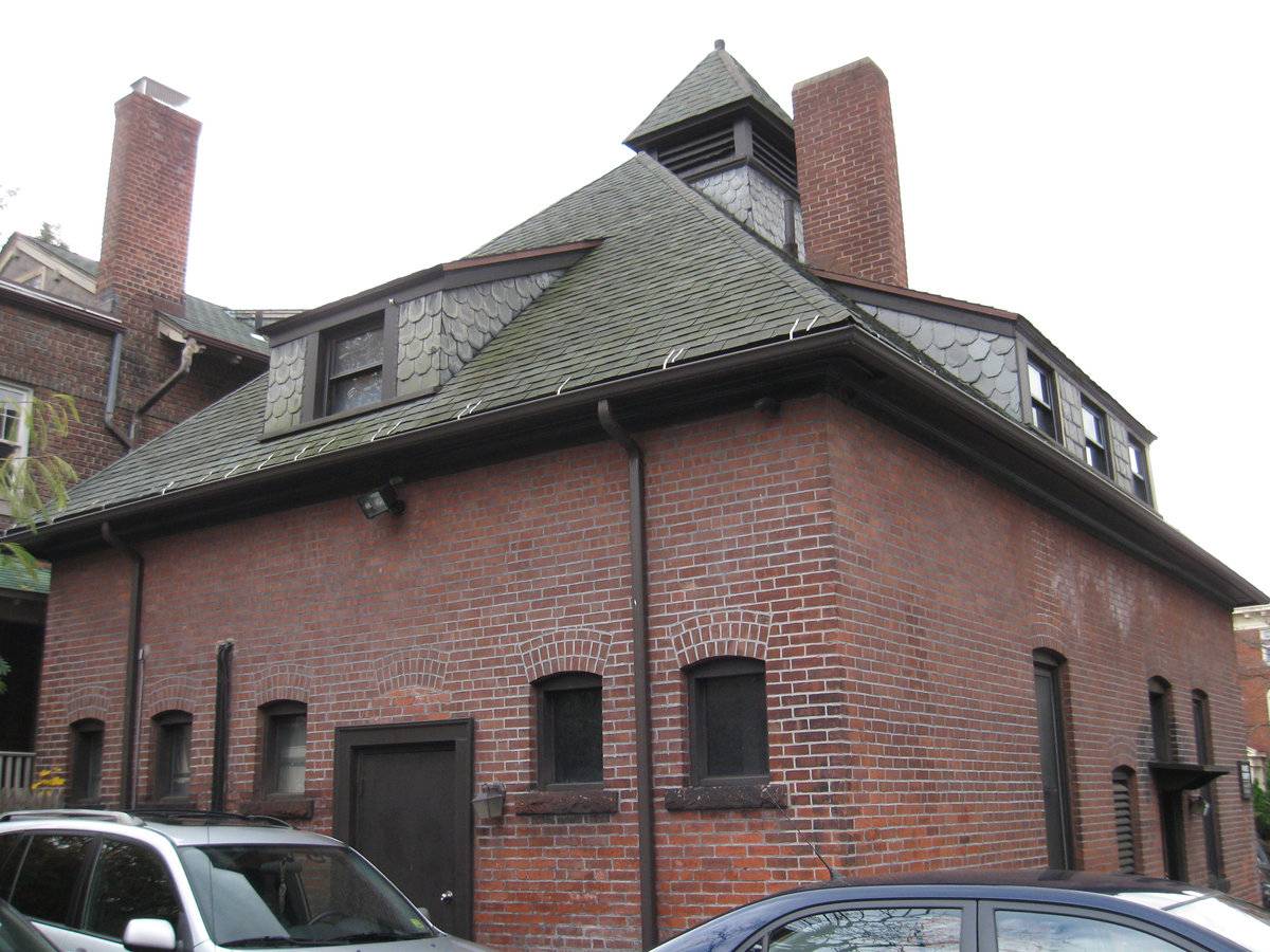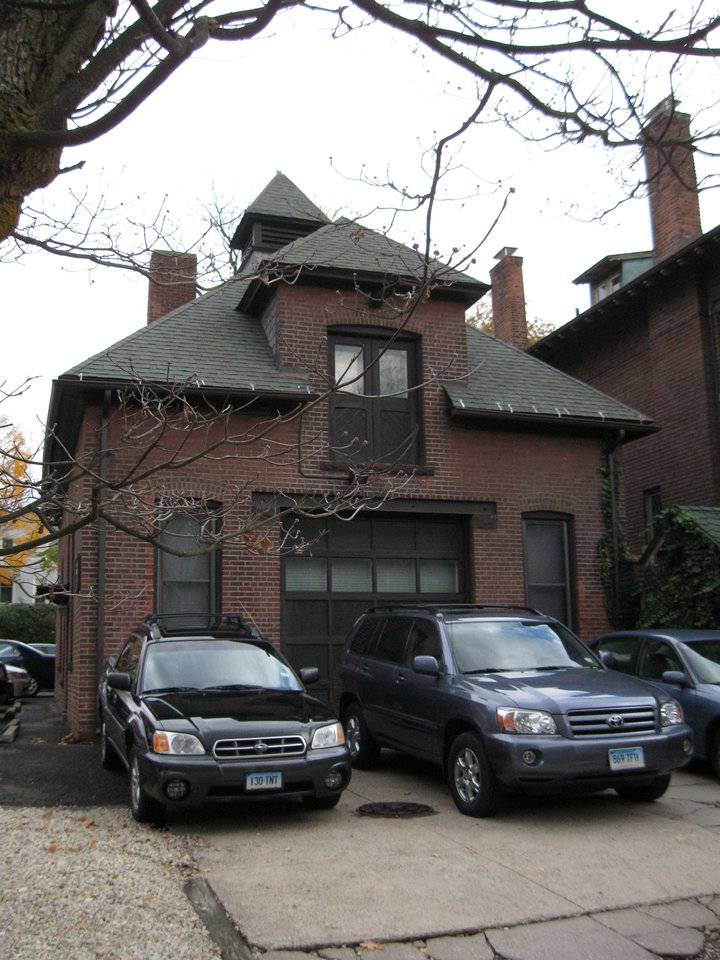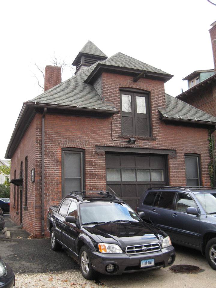 Carriage house of Whitney Avenue mansion, now converted to attorneys' offices (award-winning addition designed by Herbert Newman Associates to match style of original building). Contributing resource in the Whitney Avenue National Register Historic District.