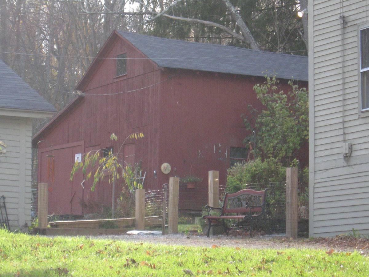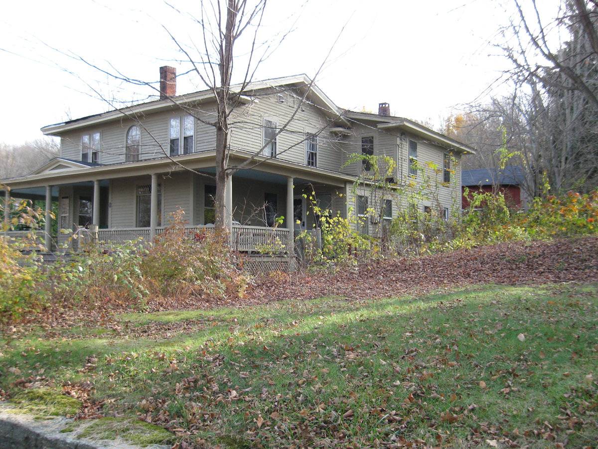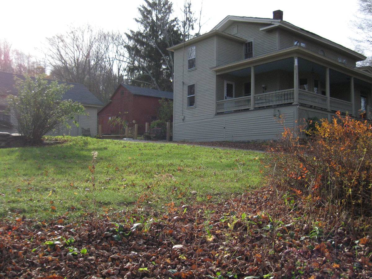 The property is now 7 acres, extending south and to the east and west behind the neighboring house lots which front Wall Street. The house is a mid-19th-century 2-story gable-roofed building with its ridge-line oriented east-west parallel to the street. Several additions extend to the south and west. A 1-story wrap-around porch covers the west, north, and east sides. The driveway enters the site along the east side of the house, leading to a 20th-century garage and to the barn which is directly south of (behind) the house.