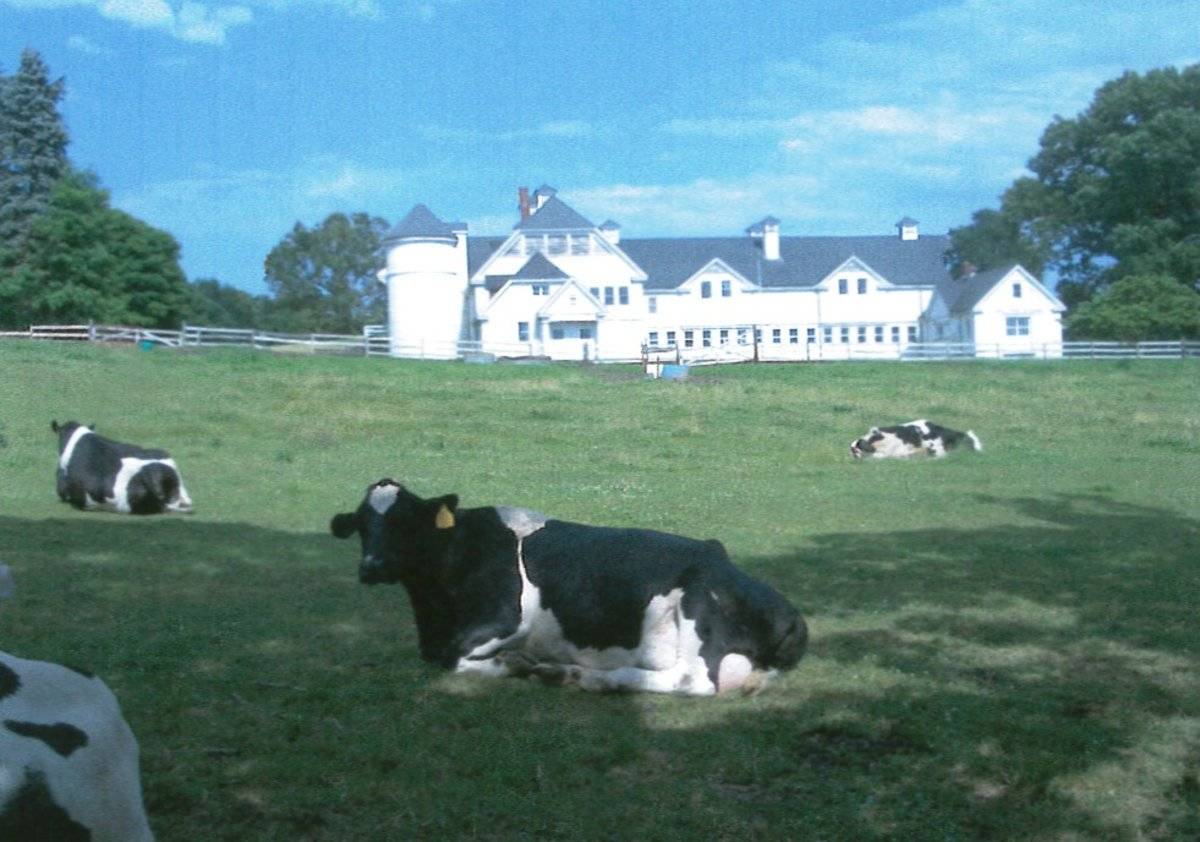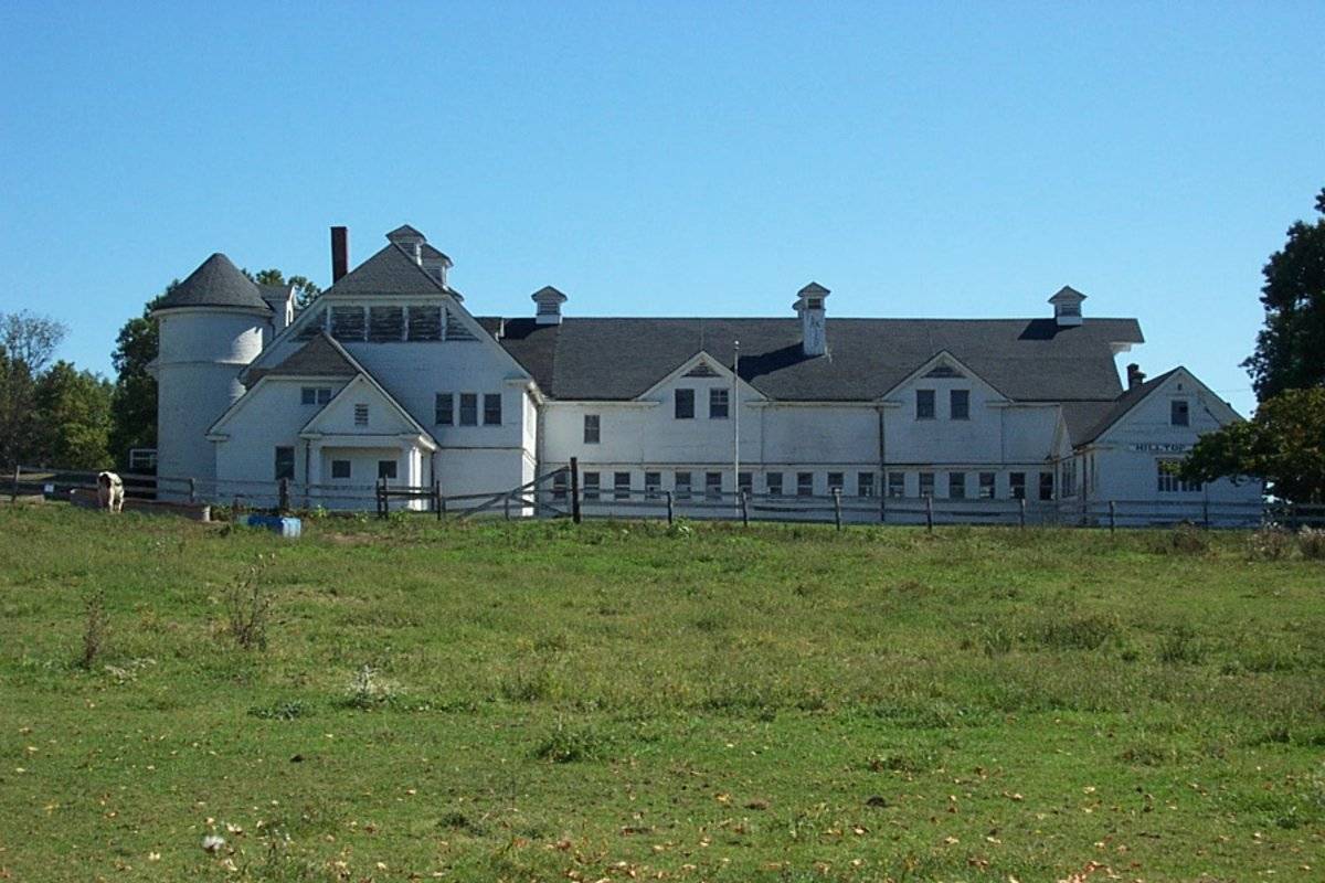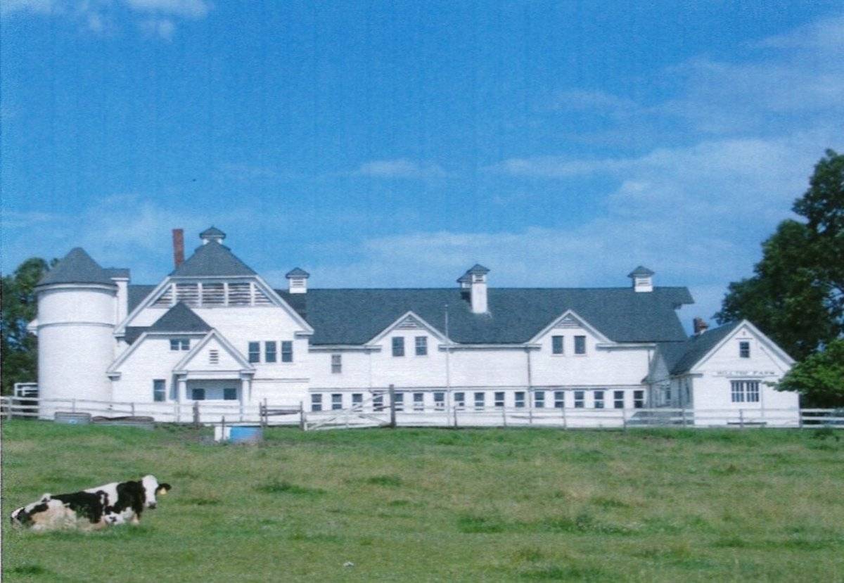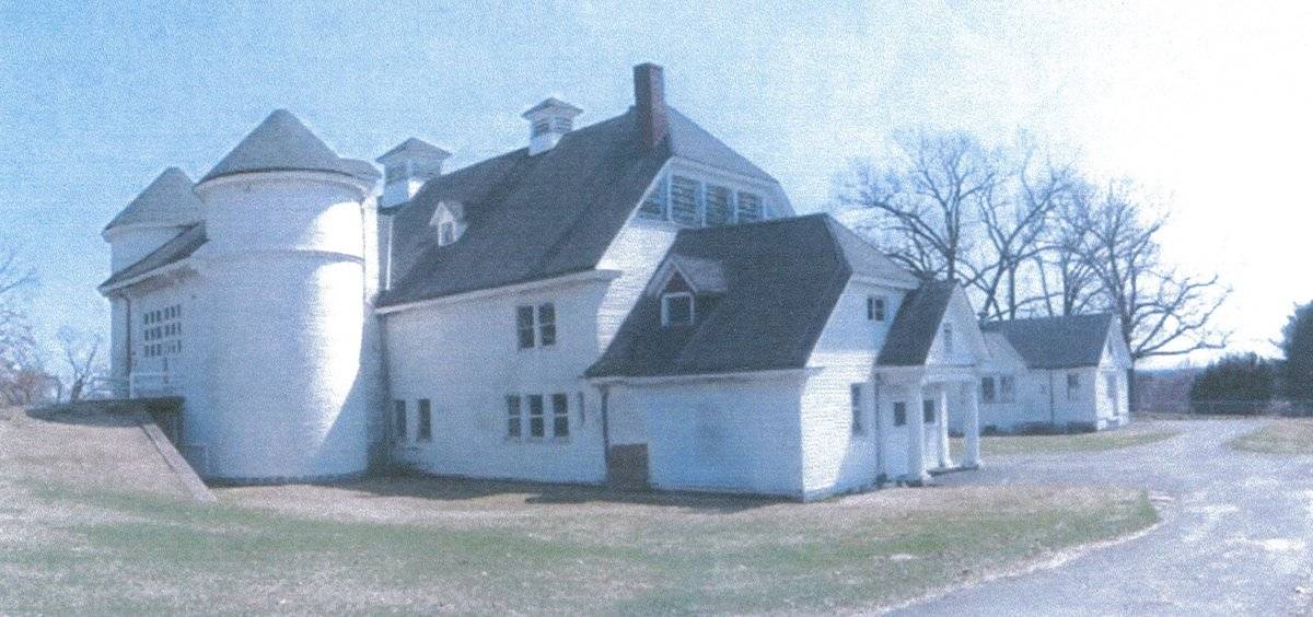 The Dairy Barn that dominates the historic Hill-top Farm district’s landscape was constructed in 1914. As the centerpiece of the agricultural section the estate, it conformed to the latest scientific options on animal husbandry, and contained the most modern equipment and materials of the day. It is an excellent example of an early twentieth-century, ground-level stanchion barn executed in the Colonial Revival style. The barn’s multiple wall and roof planes and fenestration express the building’s sprawling mass while at the same time providing scale and unity between the elements. The design, particularly in the entrance and the placement of the silos at the north end of the building, the wall dormers, and patterns of fenestration, show a cleverly conceived building constructed to appeal to the sensibilities of the picturesque Victorian era that was ending and the Colonial Revival tastes that were emerging at the time.