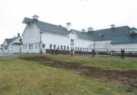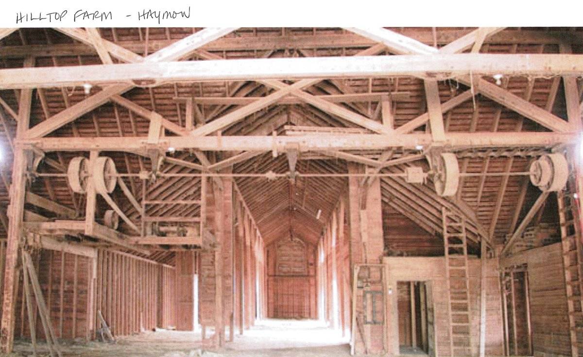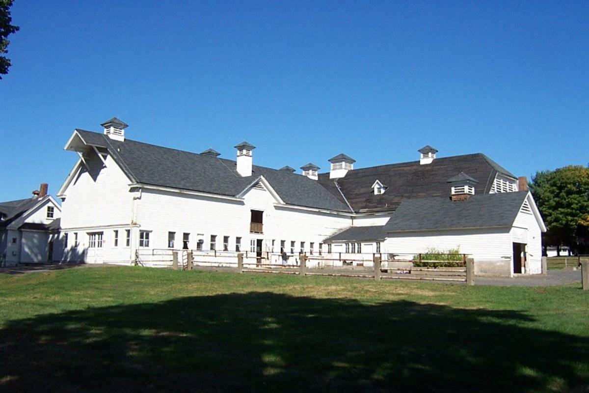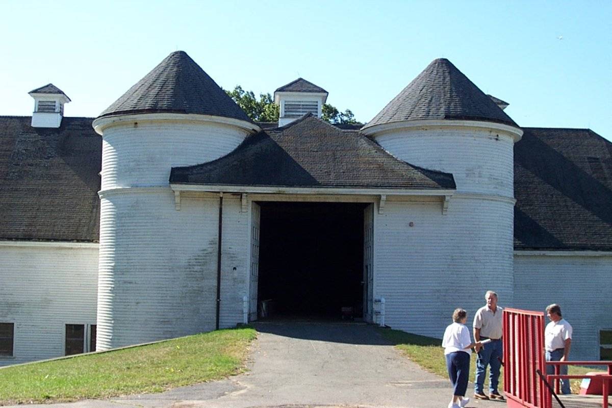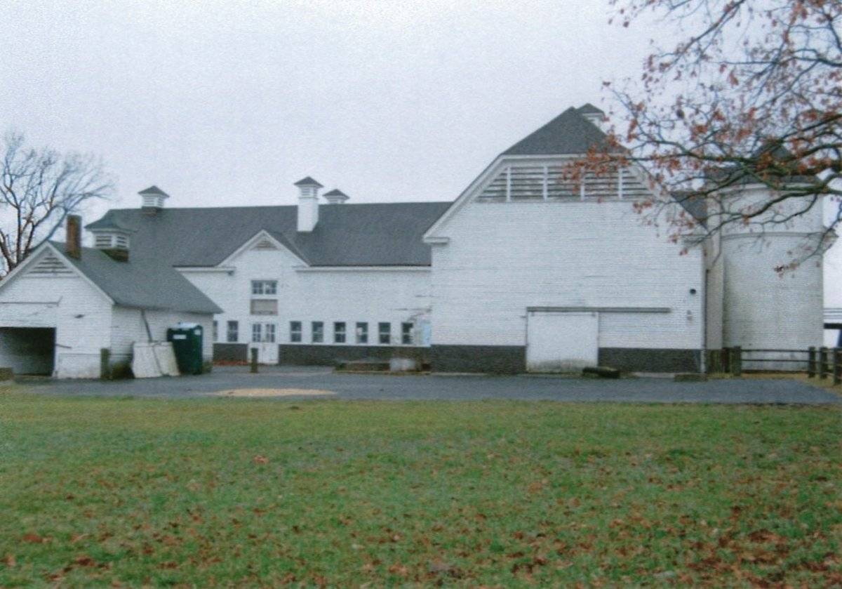 The Dairy Barn that dominates the historic Hill-top Farm district’s landscape was constructed in 1914. As the centerpiece of the agricultural section the estate, it conformed to the latest scientific options on animal husbandry, and contained the most modern equipment and materials of the day. It is an excellent example of an early twentieth-century, ground-level stanchion barn executed in the Colonial Revival style. The barn’s multiple wall and roof planes and fenestration express the building’s sprawling mass while at the same time providing scale and unity between the elements. The design, particularly in the entrance and the placement of the silos at the north end of the building, the wall dormers, and patterns of fenestration, show a cleverly conceived building constructed to appeal to the sensibilities of the picturesque Victorian era that was ending and the Colonial Revival tastes that were emerging at the time.