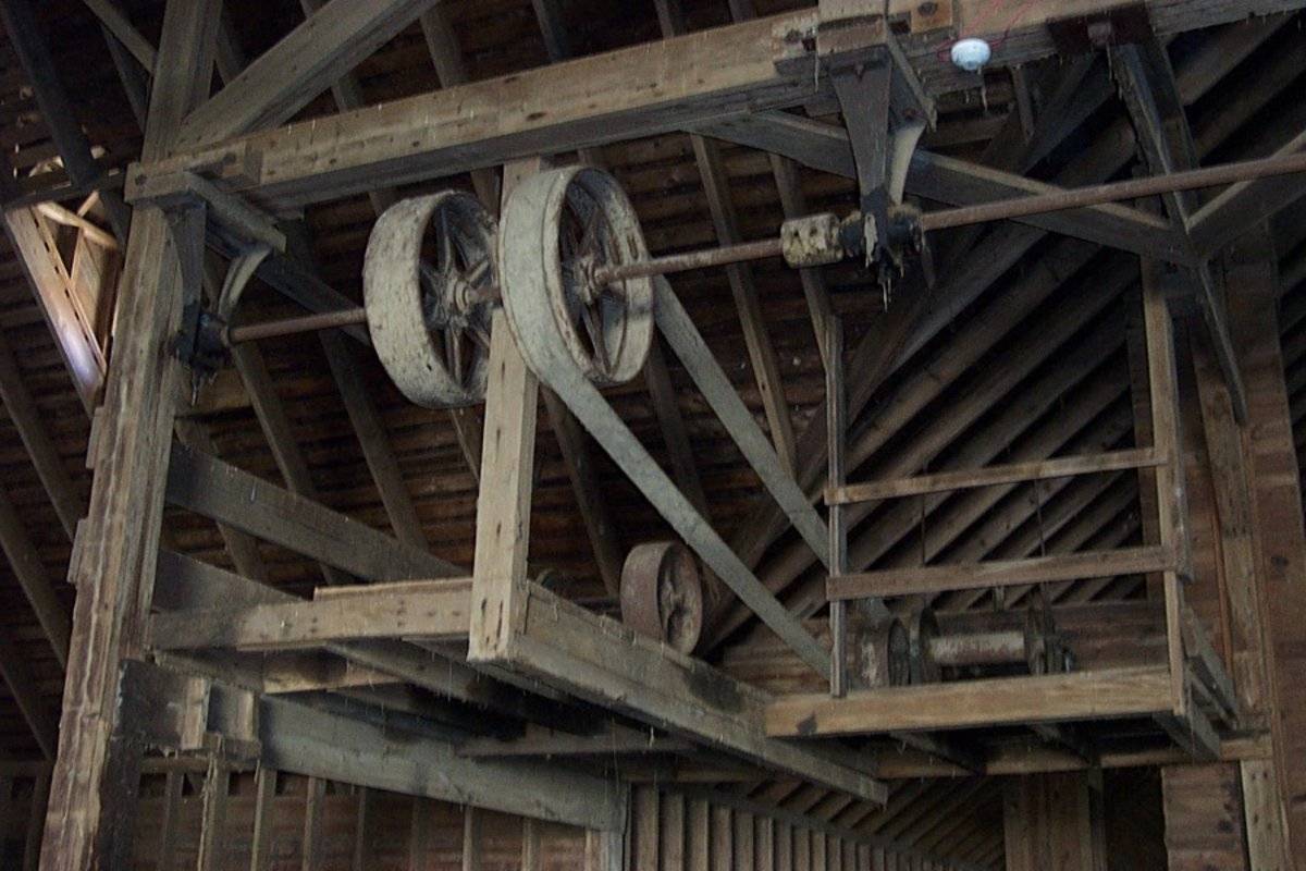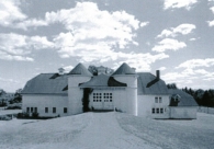 2. Two cylindrical silos along the north elevation of the bam, flanking the main entrance at the center.