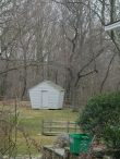 Example of corn crib At rear of residential lot. Located in Guilford Town Center Historic District (1976), and is assumed to be a contributing resource within the district although an inventory of structures is not included in the nomination (the site is outside the Local Historic District boundary). House is individually listed on the National Register (2000); barn is considered non-contributing due to date outside the period of significance.