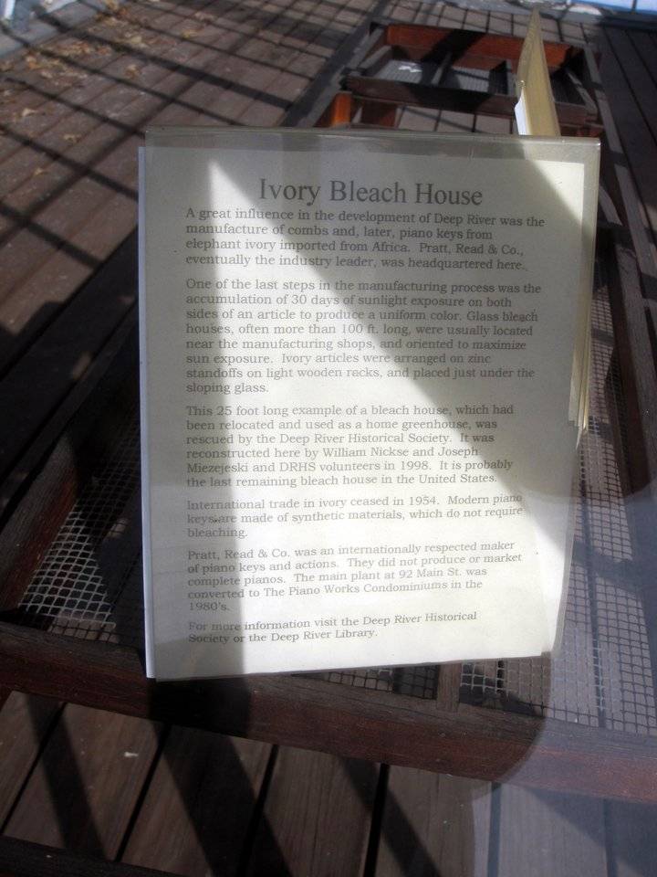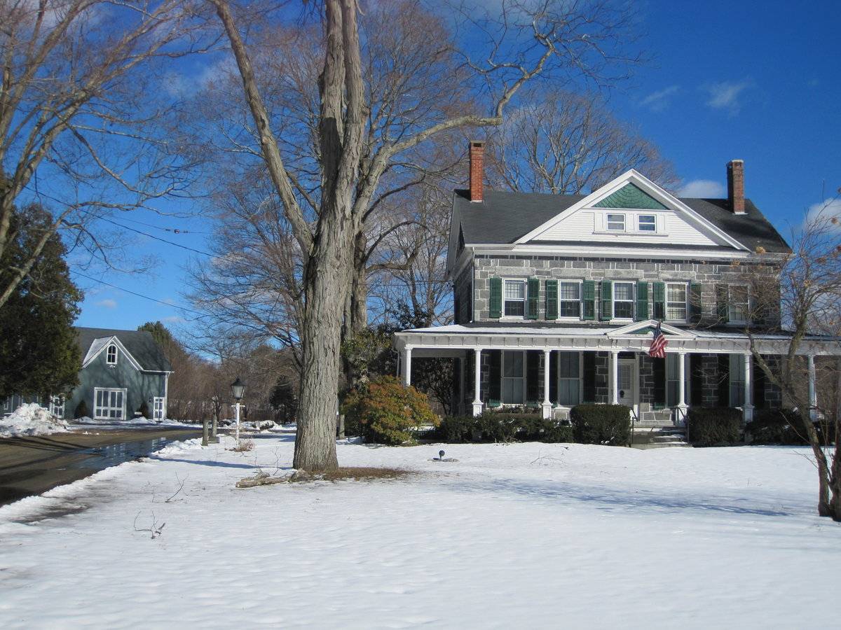 Listed on the State Register of Historic Places 2/06/2013 Construction Date: 1889 according to Deep River Historical Society, remodeled 1991 Visible from Road: Yes Interior Accessible to Public: Yes Current Use: Meetings and Displays Historic Use: Carriage House Environment: Residential, open land Threats: None Materials: Vertical siding Typology: New England/English Hybrid Structural System: Unknown Layout System: Unknown Roof Materials: Asphalt shingle Roof Type: Gable, shed To the left of the barn is a 25 foot long ivory bleach house which was rescued by the Historical Society and reconstructed here. The stone house located on property built in 1840 by Deacon Ezra Southworth for he and his new wife, Eunice Post Southworth. The house was built using stone quarried on the property. The original flat tin roof was later replaced by a gabled roof. A rear addition was constructed in 1881, just before the marriage of the Southworth’s son, Ezra Job Birney Southworth, to Fanny Shortland of Chester. The wraparound porch was added to the house in 1898. Deacon Ezra’s granddaughter, Ada Southworth Munson, who died in 1946, bequeathed the property to the Deep River Historical Society. It is now a house museum open to the public. [Source: Marissa Cartoceti]