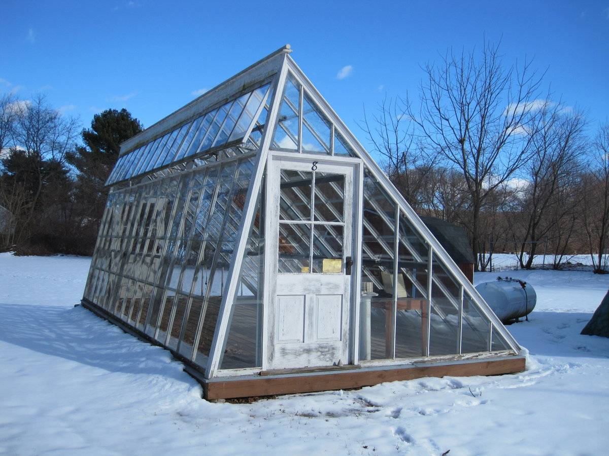 The wooden frame of the addition is supported on a concrete foundation. The wooded frame of the barn