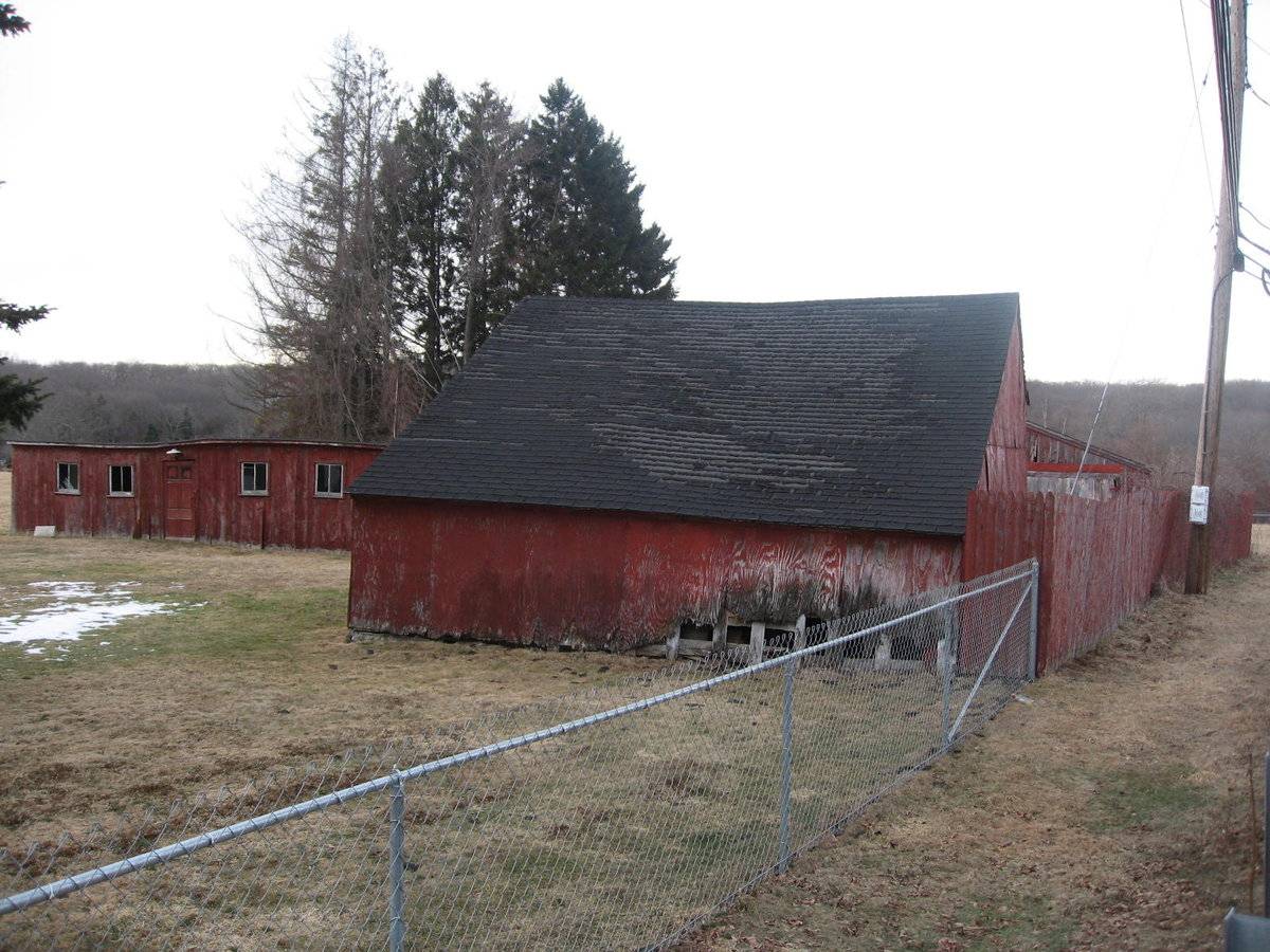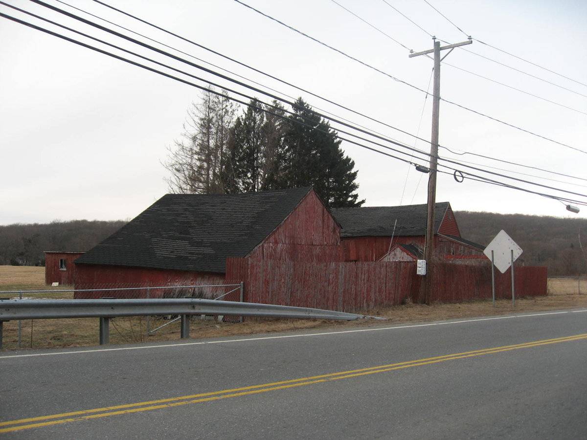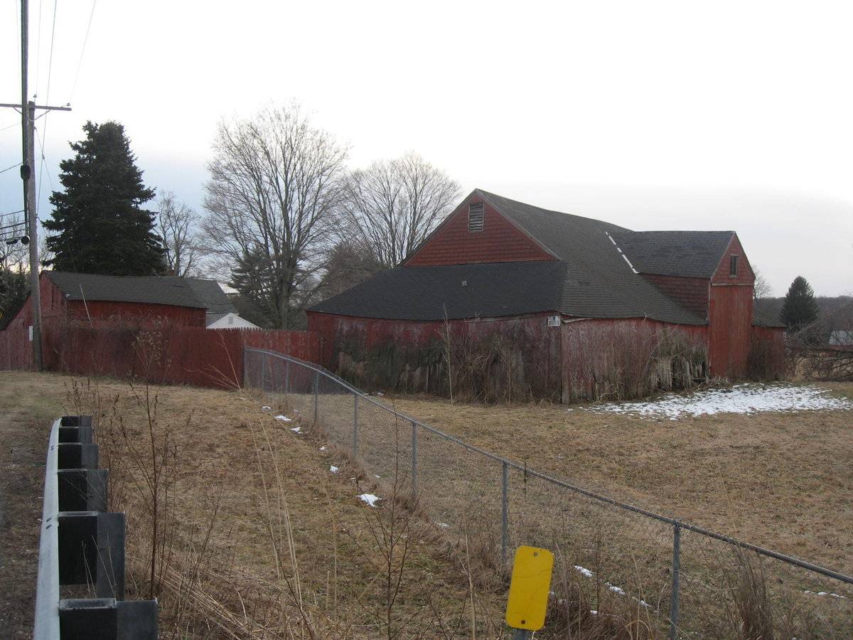 The barn complex is towards the north-east of the property, abutting to West Elm Street. The barn complex is surrounded by open land and the main residence is towards its south-west.