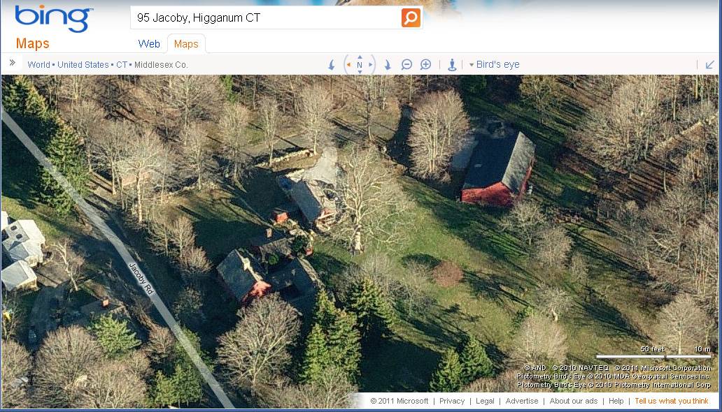 Jacoby Road runs roughly from south to north, forming a parallel loop connecting at its south and north ends to Candlewood Hill Road. The Village of Higganum is located to the northeast. This site is on the east side of the road. The Captain John Smith House (c. 1740) is a 1 1/2-story center-chimney cape-style structure with its ridge-line parallel to the road and a number of one-story additions at the south and east sides. The house is set behind a narrow front lawn surrounded by fieldstone walls which border the road and the north side of the property. A garage is located east of the house. The barn is further to the east on a rise of land at the edge of the open lawn. The remainder of the property is wooded. The 8.82-acre lot is dedicated to residential use, with no apparent current agricultural activity.