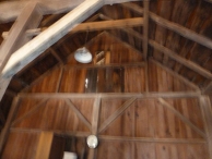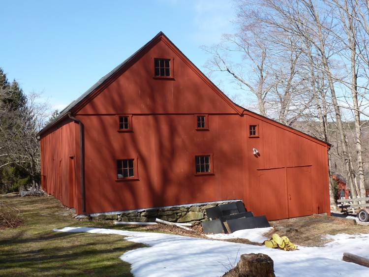 The oldest barns still found in the state are called the “English Barn,” “side-entry barn,” “eave entry,” or a 30 x 40. They are simple buildings with rectangular plan, pitched gable roof, and a door or doors located on one or both of the eave sides of the building based on the grain warehouses of the English colonists’ homeland. The name “30 by 40” originates from its size (in feet), which was large enough for 1 family and could service about 100 acres. The multi-purpose use of the English barn is reflected by the building’s construction in three distinct bays - one for each use. The middle bay was used for threshing, which is separating the seed from the stalk in wheat and oat by beating the stalks with a flail. The flanking bays would be for animals and hay storage.