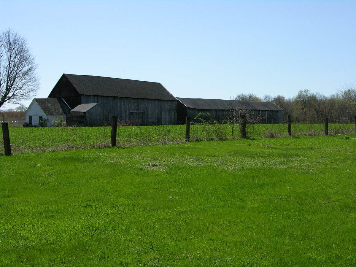 Ita a barn complex with at least two main barns, one tobacco shed and two other sheds.