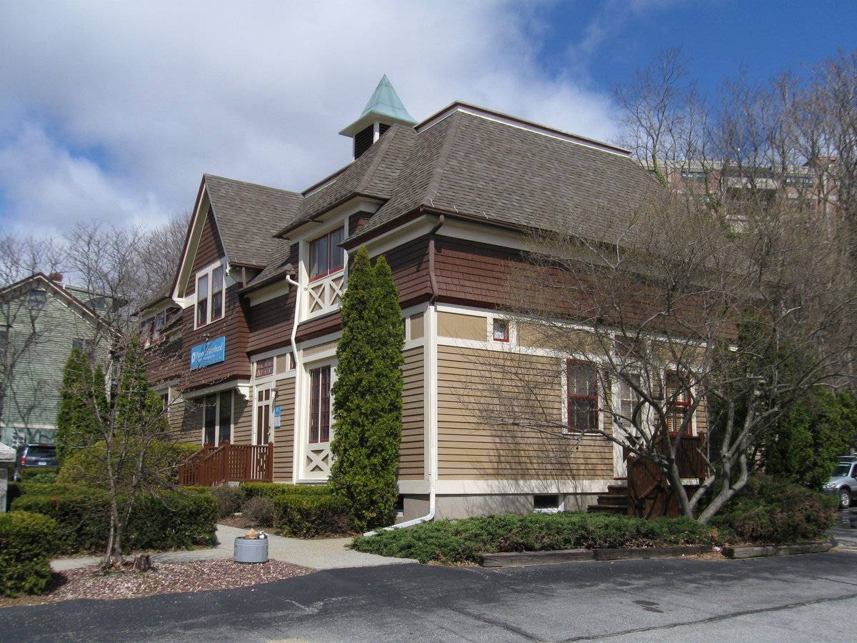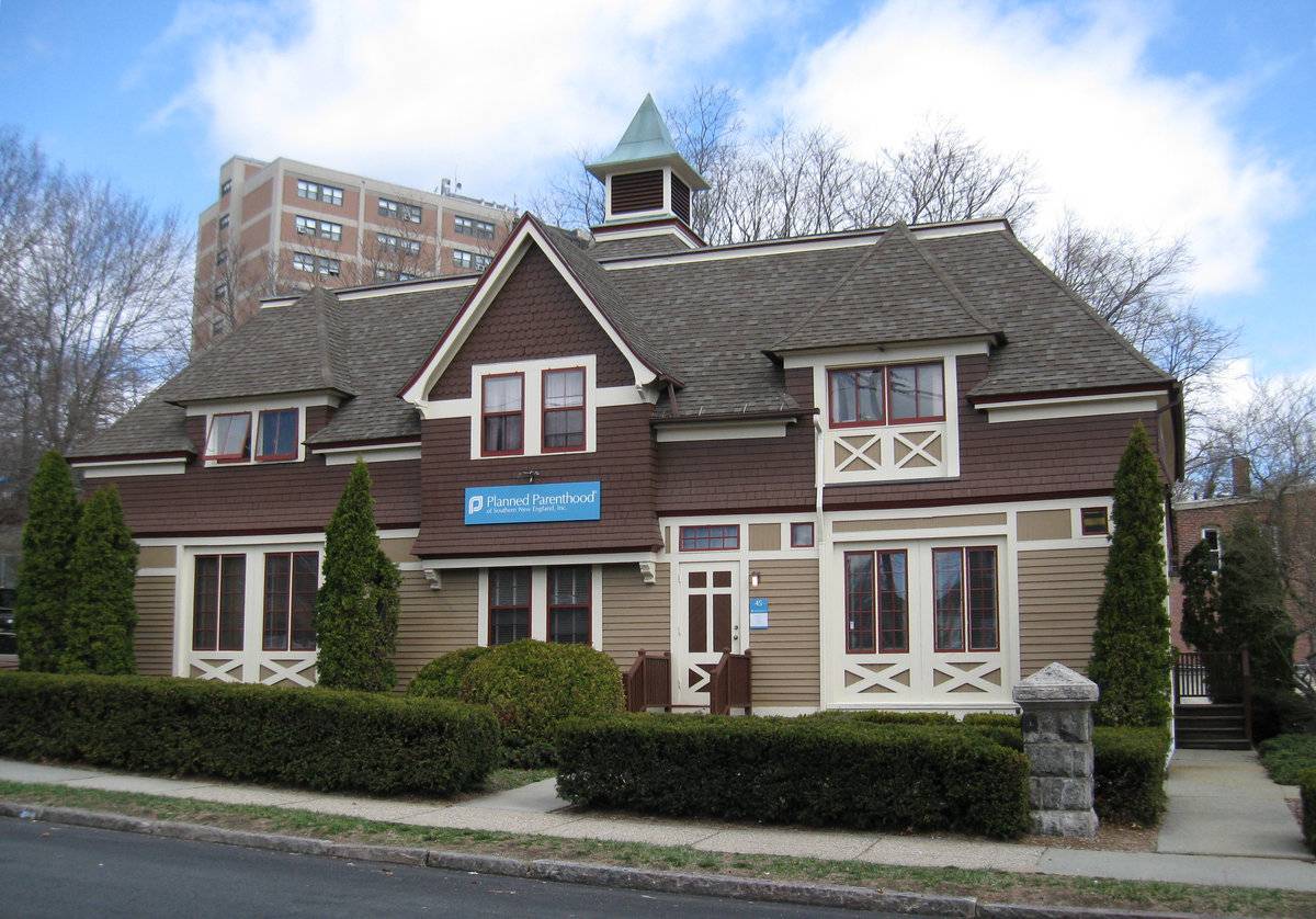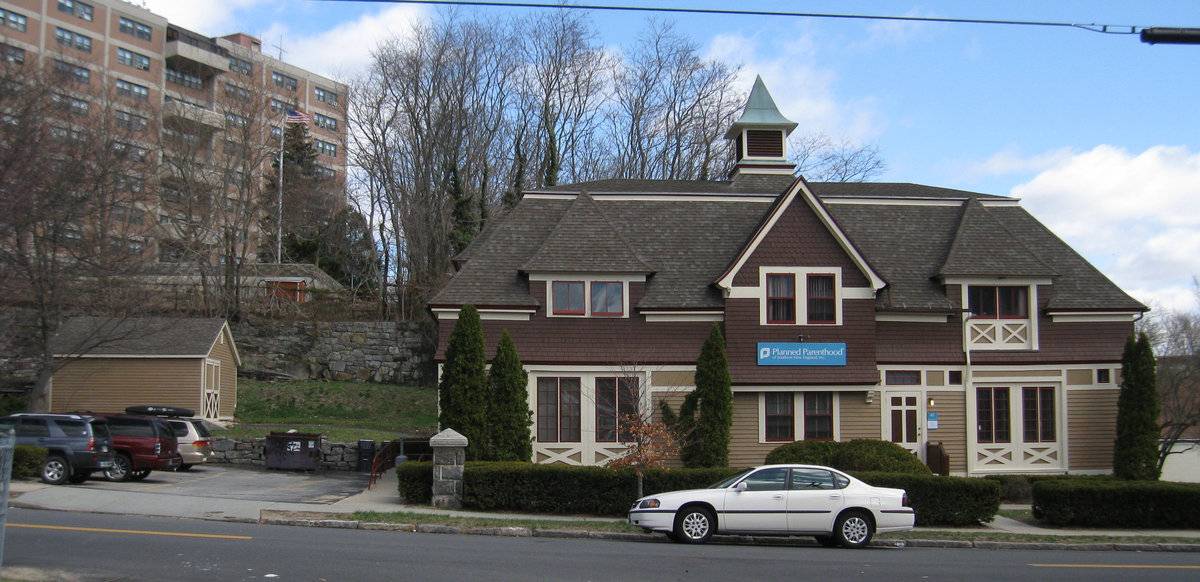 Located in the Hempstead National Register Historic District. The Planned Parenthood building was moved from a site behind the historic County Courthouse where there is now a parking lot. It was built in 1892 as a carriage house for the Elisha Palmer estate at the corner of Broad and State. Attached photo: It was called Little Mt. Vernon because of its resemblance to the original. - Sandra Chalk, New London Landmarks Quote from National Register Form: The topography of the Hempstead Historic District defined the area of its settlement in the 17th century and continued to play an important role in its development throughout its history. Located geographically away from the center of town in the outlying farm area, the land on the west side of Hempstead Street was too steep and rocky for agricultural use other than pasturage, while the land to the east and along Hempstead Street could be partially mowed and tilled. Original homelots were not divided up extensively until the 1840s, when enriched by the burgeoning whaling industry, New Londoners began to seek land for dwelling houses in outlying neighborhoods close to the center of town. In the ensuing 75 years, houses were built in the Gothic Revival, Stick, French Second Empire, Queen Anne, Folk Victorian and Colonial Revival styles in addition to the Greek Revival and Italianate styles which predominate in the district. Each house was generally built in scale similar to its neighbors, so that groups of houses along Franklin (Photographs #3, #4) and Hempstead Streets (Photograph #5) and Mountain Avenue (Photographs #2, #6) relate proportionately in workmanship, materials, size and style to each other. Cohesiveness throughout the district is achieved by the closed in sense of the street scene, as all the houses face one another, down from the hill, or up from the hollow, except where the original Hempstead homelot looks out across Jay Street towards the coves (since filled in) and harbor. Significance: The Hempstead Historic District is an historically complex urban neighborhood which developed in the mid 19th-century from the subdivision of lands owned by the Hempstead and Holt families. Part of the land was developed by local abolitionists to provide housing for free blacks. The black community which developed in the district created a number of institutions for self-help and the support of its members, several of which still survive. The presence of the New London County Jail and of a number of small industries within the district influenced its development as a working-class neighborhood on the edge of New London's downtown district. (Criterion A) The Hempstead Historic District is significant for its architecture, which ranges from the 17th-century Hempstead House to early 20th-century commercial buildings. The district contains a number of mid 19th-century vernacular houses built for blacks. Major 19thcentury styles represented in the district include Greek Revival, Italianate, French Second Empire and Queen Anne. Buildings in the Hempstead Historic District vary in size from large two-family houses to small one and one-half story homes. The houses are generally more modest in scale and architectural detail than the wealthier homes of the nearby northwest section of the city.
