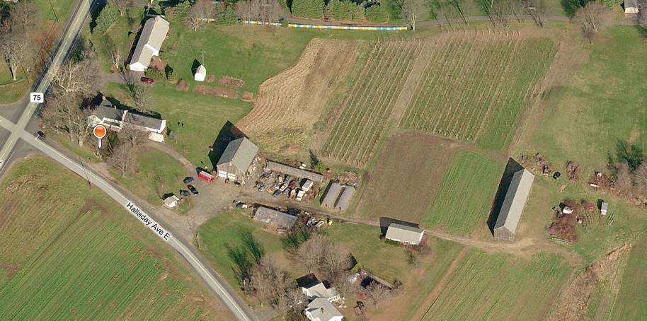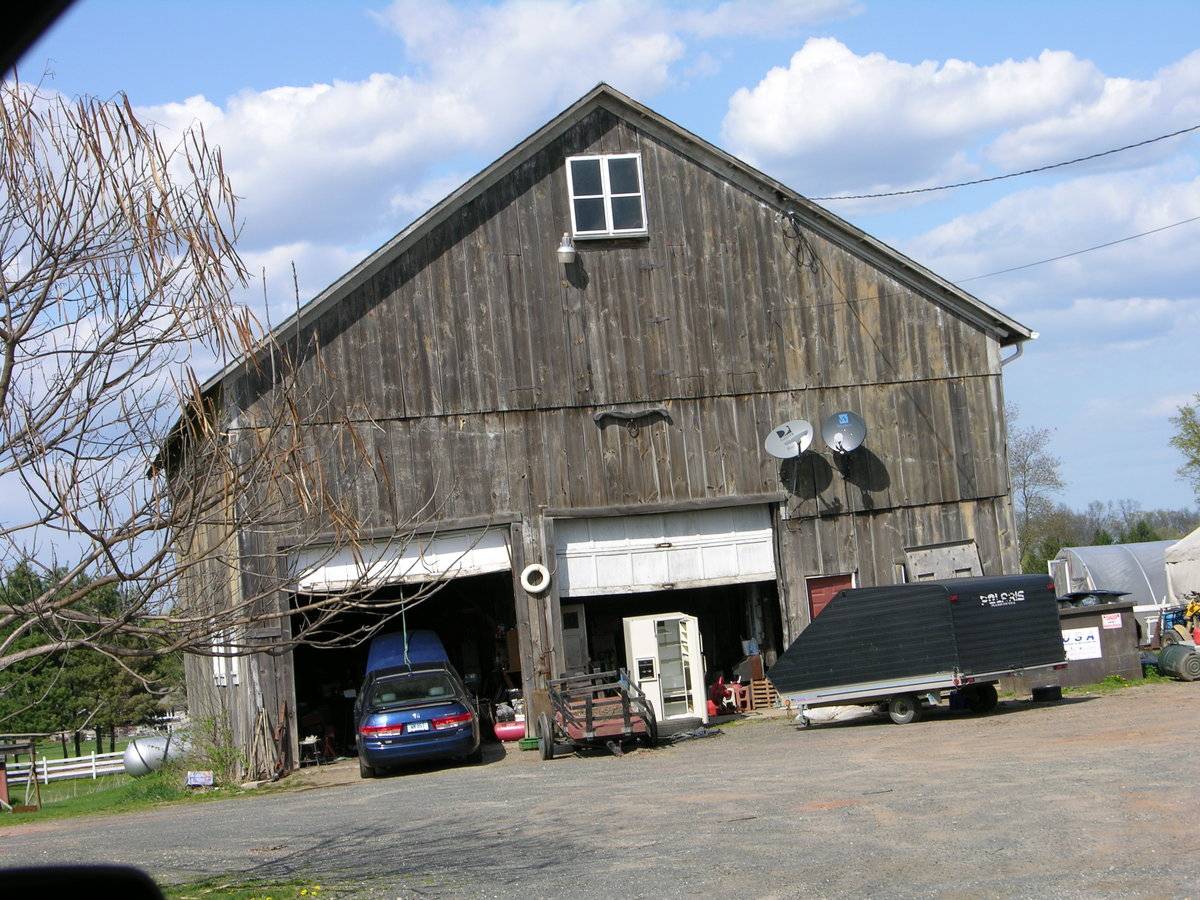 This barn is set on a 15.05 acre property that is located in the northeast quadrant of the intersection between Halladay Avenue and North Street. The property appears to be bounded by Halladay Avenue East on the south, North Street on the west, a residential property and a horse farm to the north, and residential lots to the east. A late eighteenth-century house is in the western corner of the property, directly west of the barn. The façade faces west with the ridge line running north-south with an addition on the rear. Off of the addition, it appears that there is an English barn with a ridge line that runs east-west. Grassy lawn surrounds the house and extends to the main barn. A shed likely used as a farm stand is located to the south of the barn. Four cold frame greenhouses are located to the east of the barn. A large tobacco barn is located east of the greenhouses. Tobacco fields are to the north and southeast of the barn.