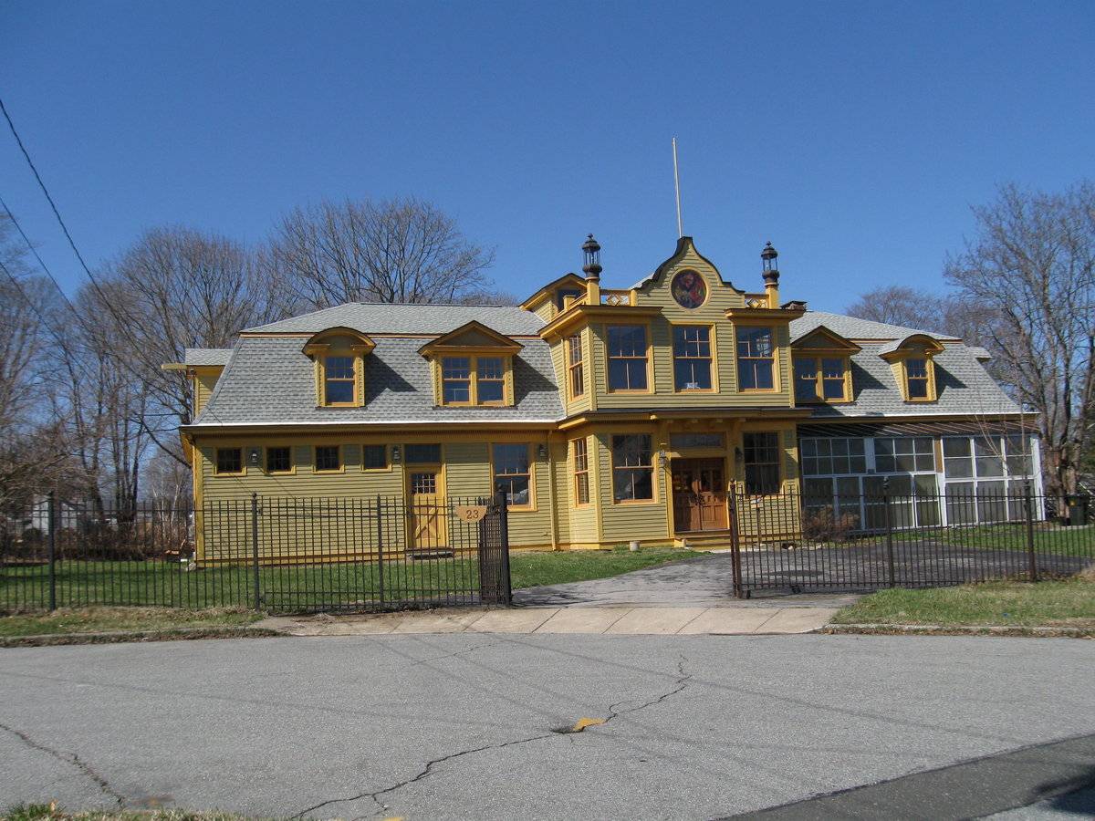 Originally part of the estate at 563 Pequot Avenue as shown on the historic district map from 1988. Mansard-roofed carriage barn at #23 now converted to a residence, and gable-roofed barn at #22 now used as a garage. The Pequot Colony Historic District, active between 1852 and 1930, is historically significant as one of the most prominent summer resort communities on the Connecticut shore. The southern end of New London was used primarily as farmland in the first two centuries following the founding of the city. In 1852, the shoreline railroad connecting New London to New York was completed; two local businessmen purchased 35 acres of the Harbor’s Mouth Farm and began the development of the resort area along Pequot Avenue facing the Thames River and Long Island Sound. A trolley line was built along Montauk Avenue in 1893, and employees of the large estates began to build their own homes along Montauk. In the early 20th century more homes were built as the large estates were subdivided, and more homes were winterized for year-round use. New London is a historically-rich community located at the convergence of the Thames River and Long Island Sound. The area was called Nameaug by the Pequot Indians. John Winthrop, Jr. founded the first English settlement here in 1646. Inhabitants informally named it Pequot after the tribe. On March 10, 1658 the town was officially named after London, England. The harbor was considered to be the best deep water harbor on Long Island Sound, and consequently New London became a base of American naval operations during the Revolutionary War. For several decades beginning in the early 19th century, New London was the second busiest whaling port in the world. The wealth that whaling brought into the city, and later connections by rail and water, furnished the capital to fund much of the city's present architecture, including examples from the early 19th-century whaling period, the late 19th-century industrial age, and an early 20th-century period of popularity as a summer colony for the wealthy.