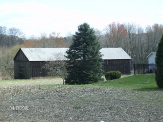This is a 1 1/2-story gable-entry tobacco shed. The ridge-line of the shed runs roughly parallel to Rockville Road, which runs approximately southeast-northwest. The tobacco shed has eleven bents and three aisles. The shed has the standard tobacco shed arrangement; one or two pairs (in this case one pair) of hinged swinging doors in the gable-facades and a ventilation system in the eave-facades. The ventilation system for the shed is vertical siding in which alternate boards are hinged along the sides to open like tall narrow doors. The roof of the barn is asphalt shingles.