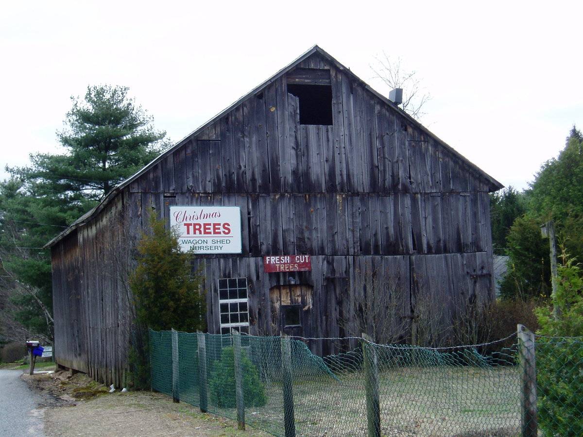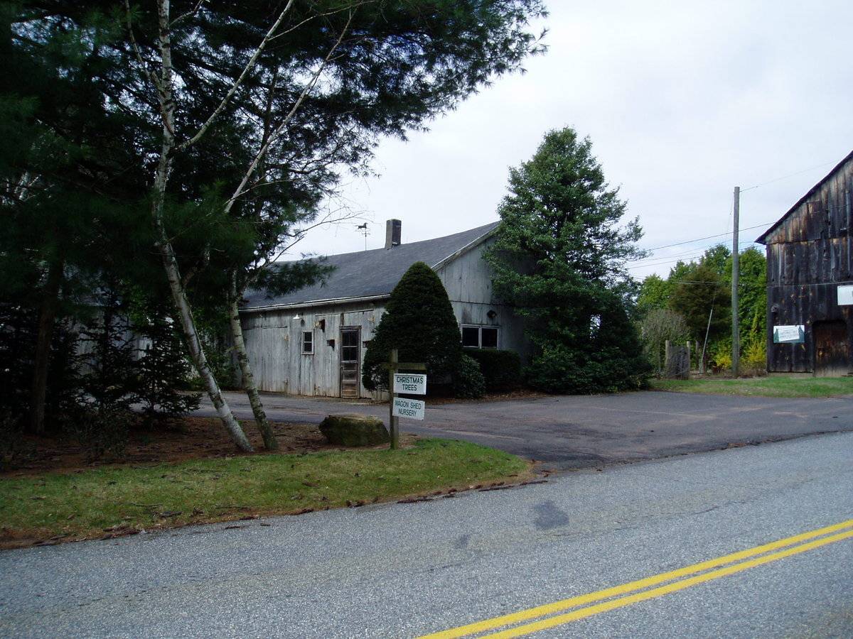 Current use of property: Christmas trees. View 1: 3/4 view from East View 2: Detail of west end View 3: Associated out buildings from East. View 4: Associated out buildings. View 5: Barn interior